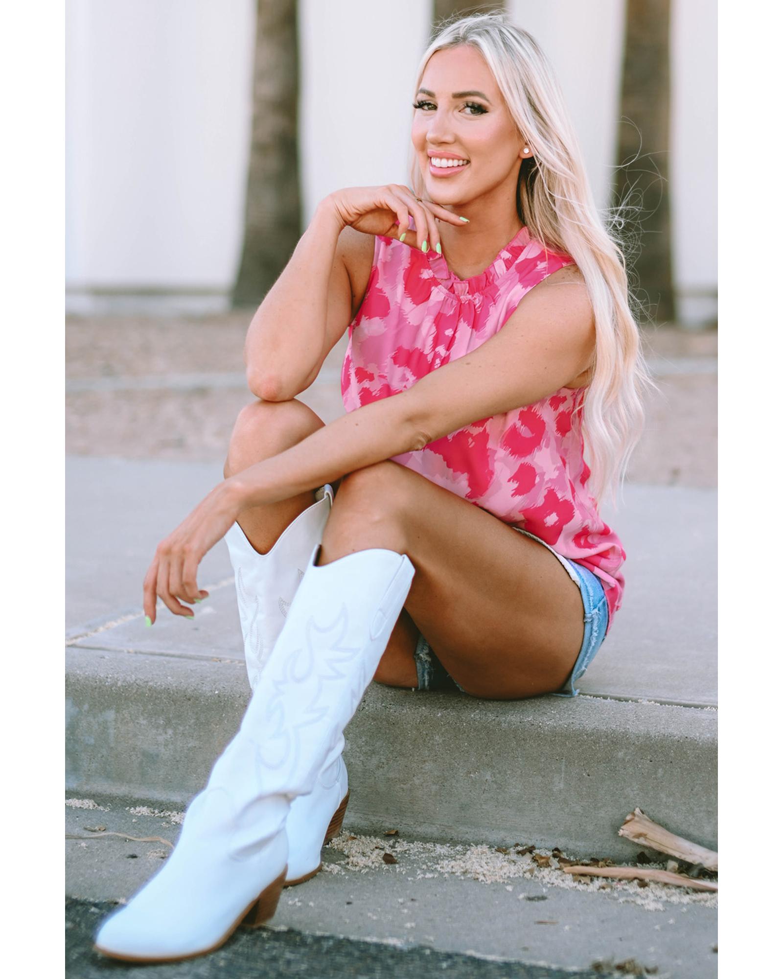 Pink Leopard Frilled Collar Printed Tank Top – XL