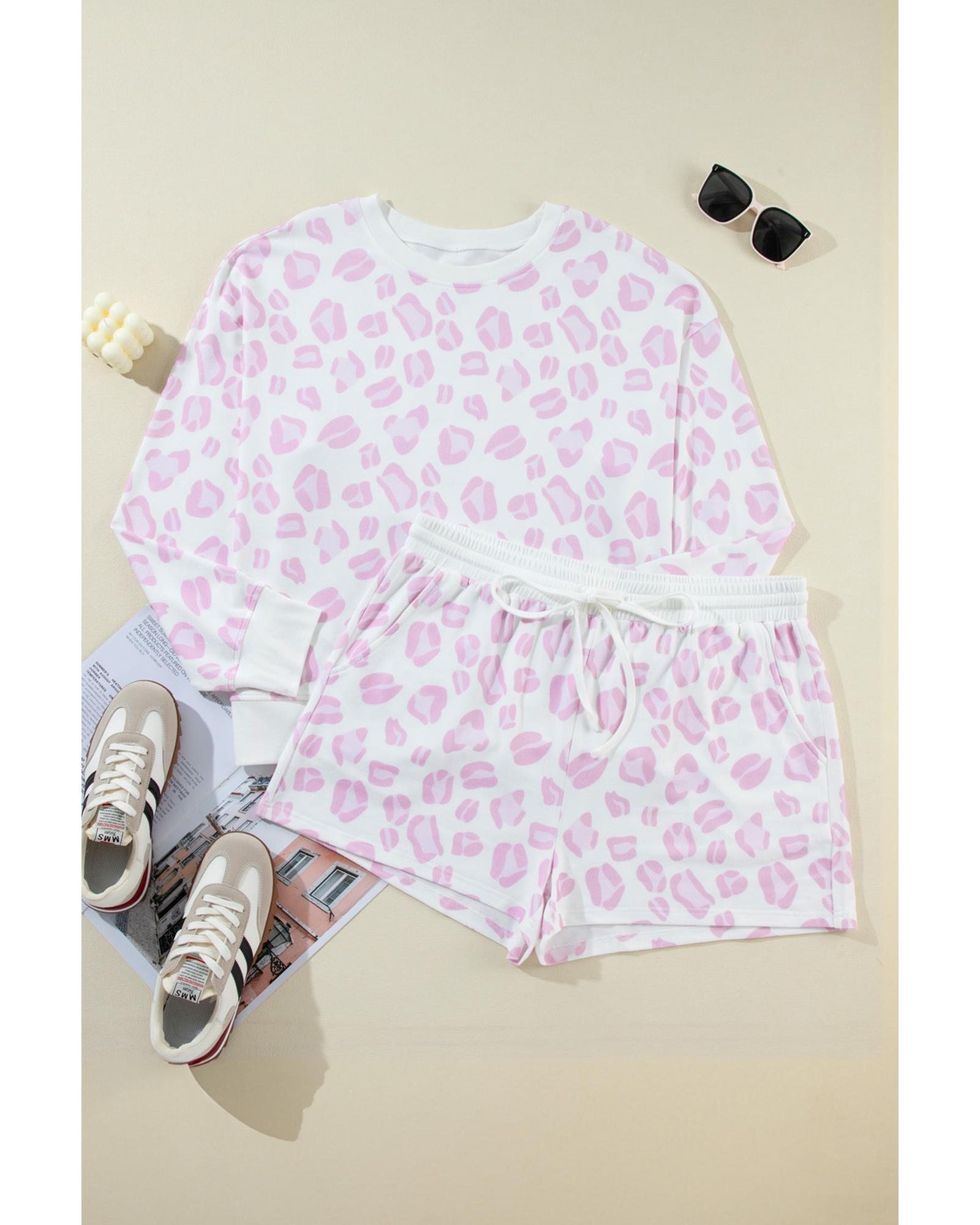 - Pink Leopard Print Long Sleeve Top Plus Size Shorts Set