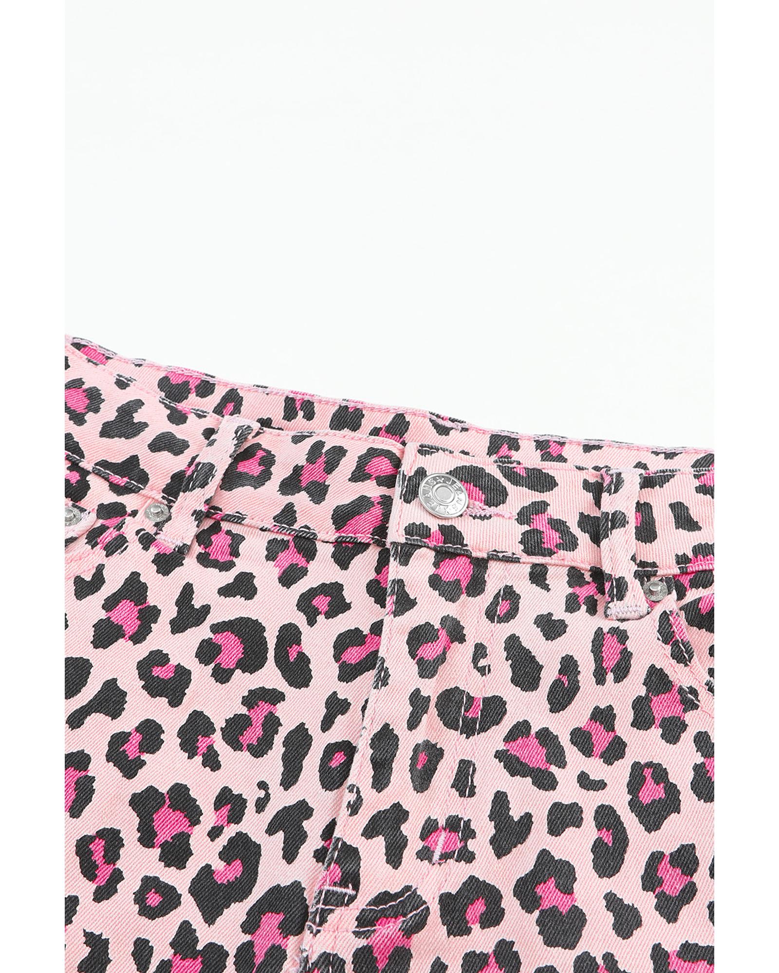Pink Leopard Print Raw Hem Denim Shorts – 12 US