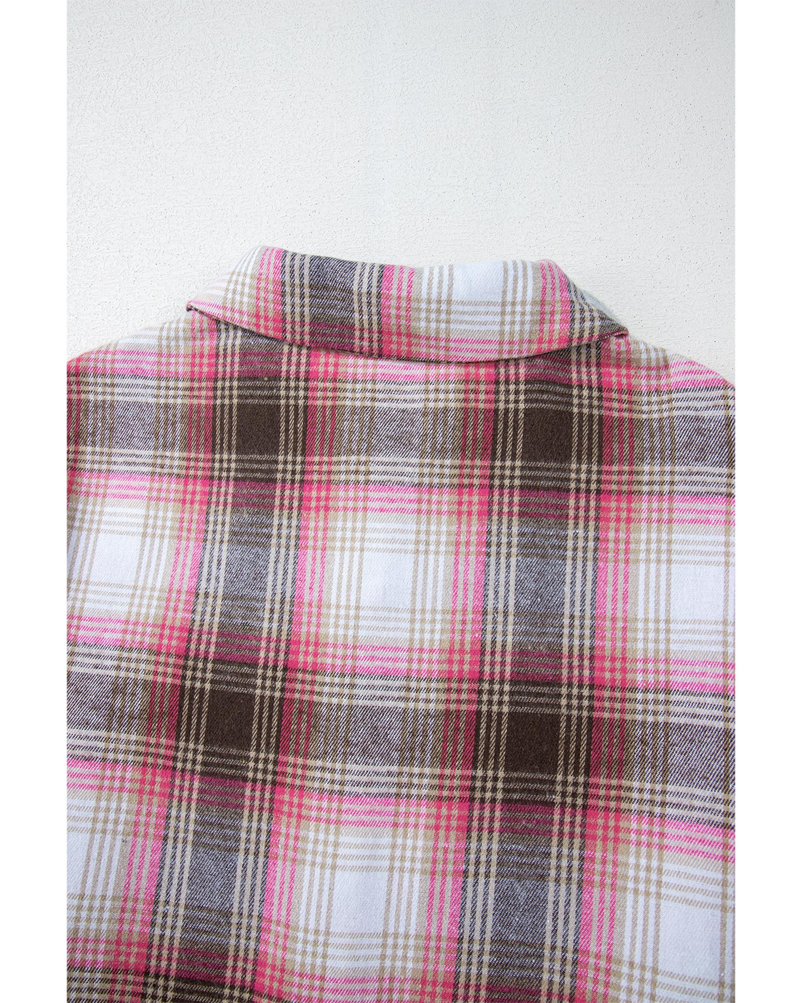 Pink Plaid Flap Pocket Button Up Shacket – L