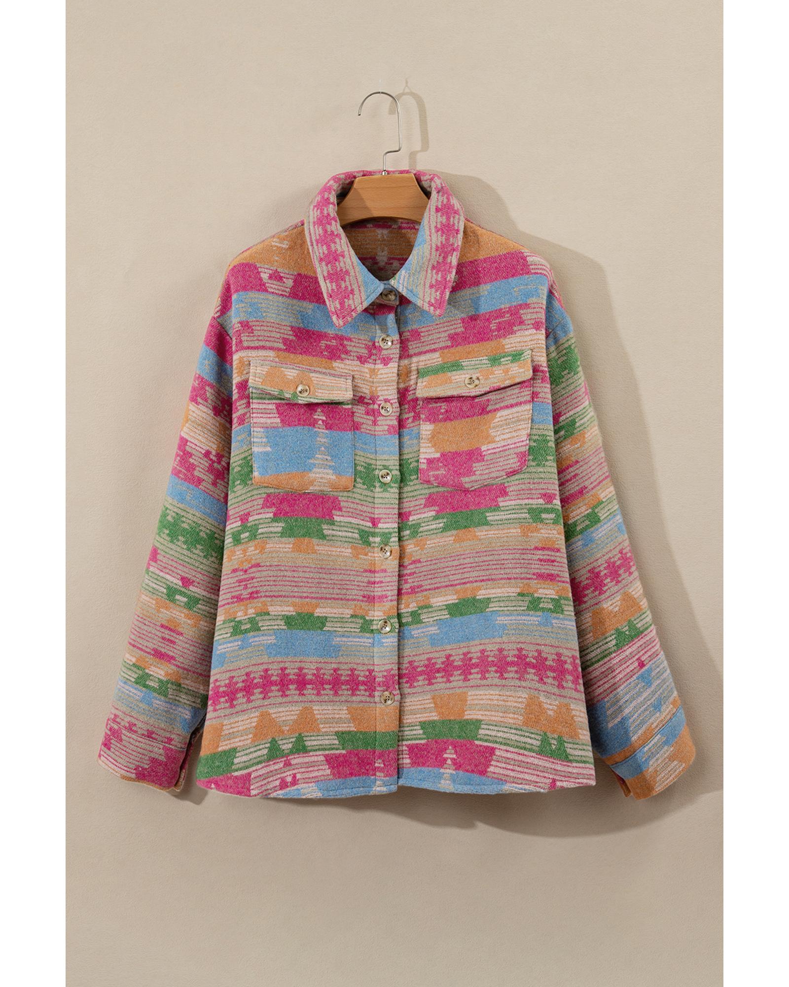 - Pink Plus Size Aztec Printed Flap Pocket Shacket