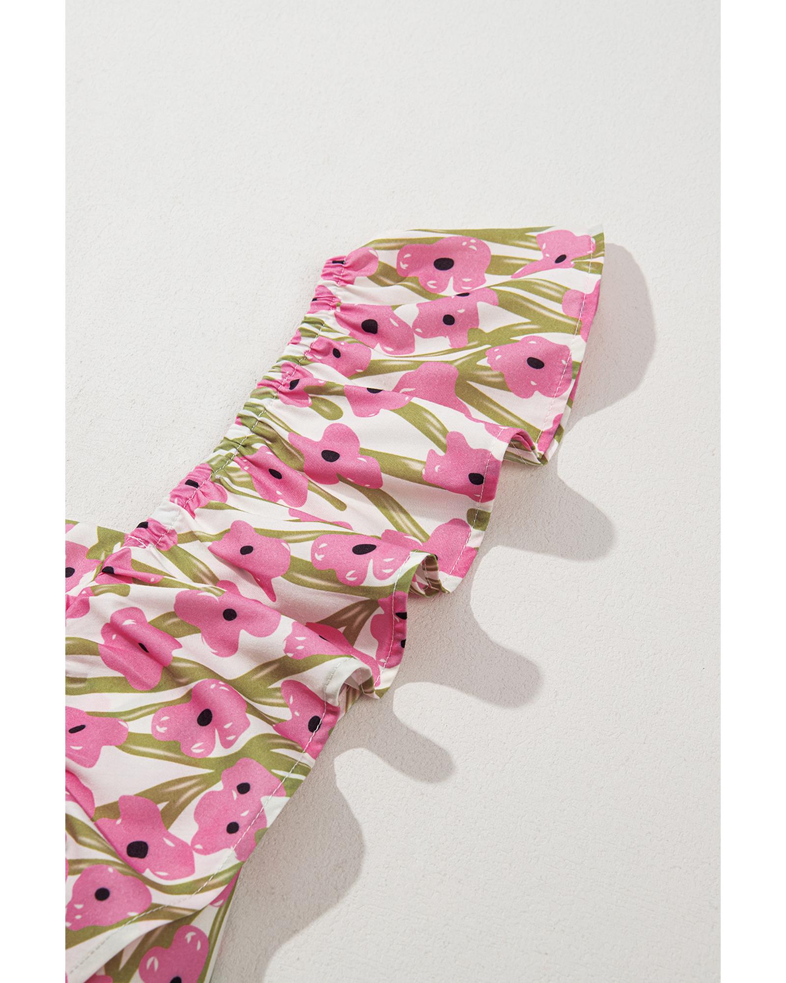 Pink Plus Size Ruffle Trim Square Neck High Waist Floral Maxi Dress – 3X