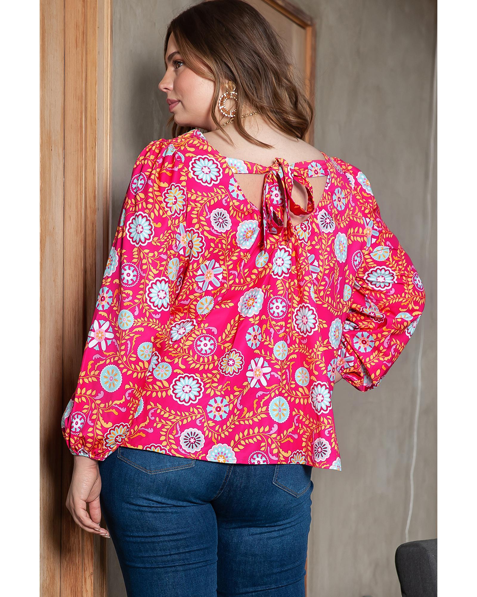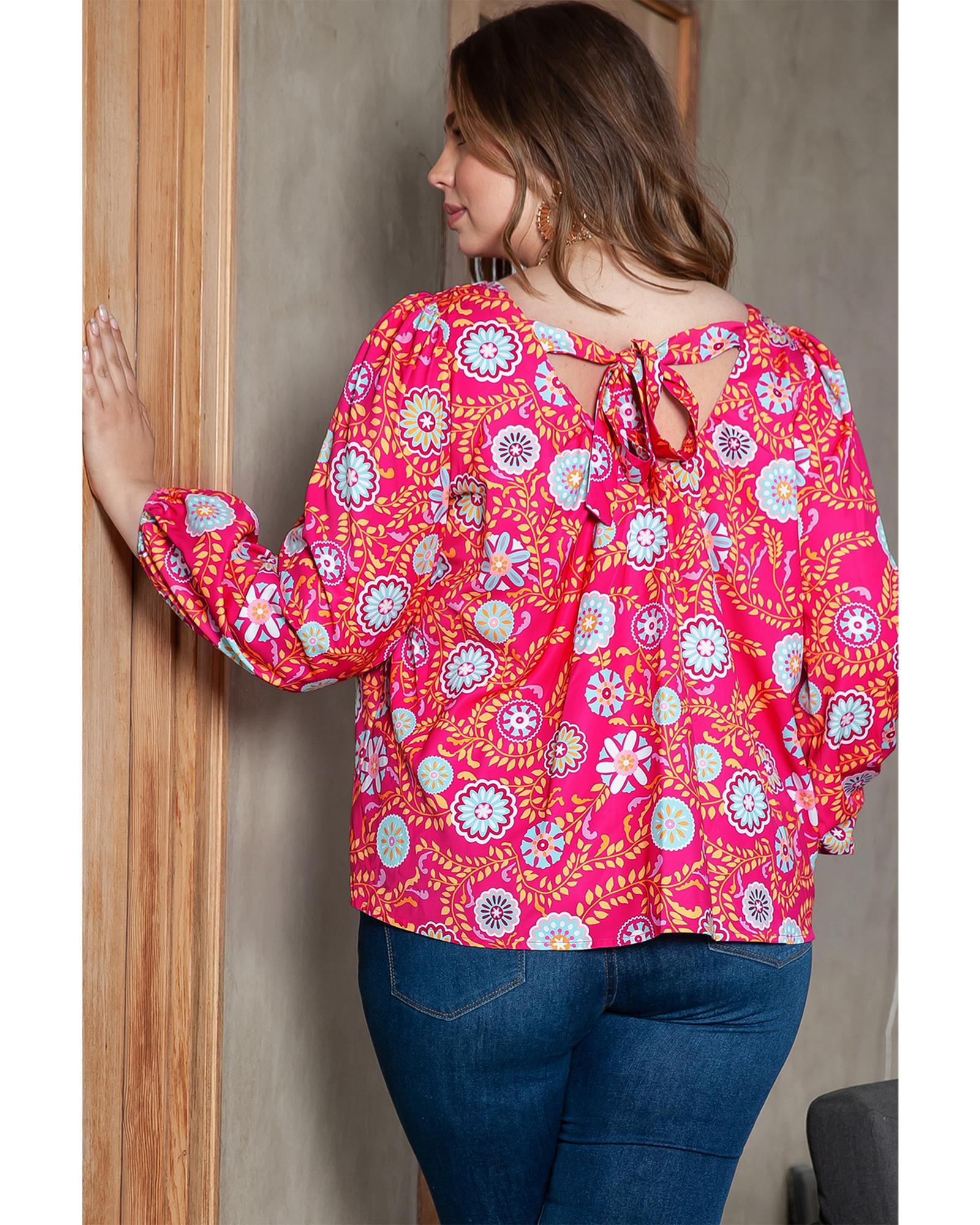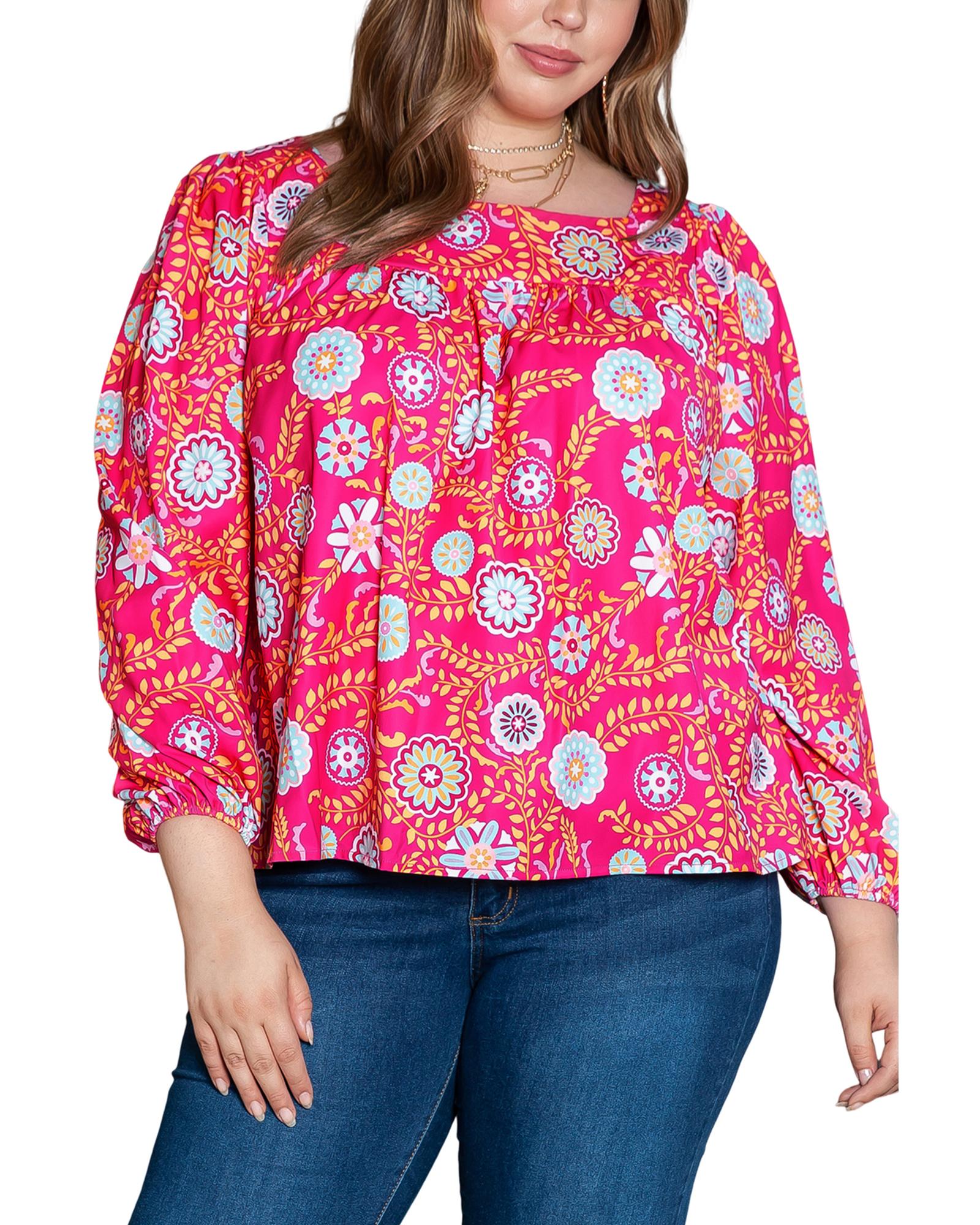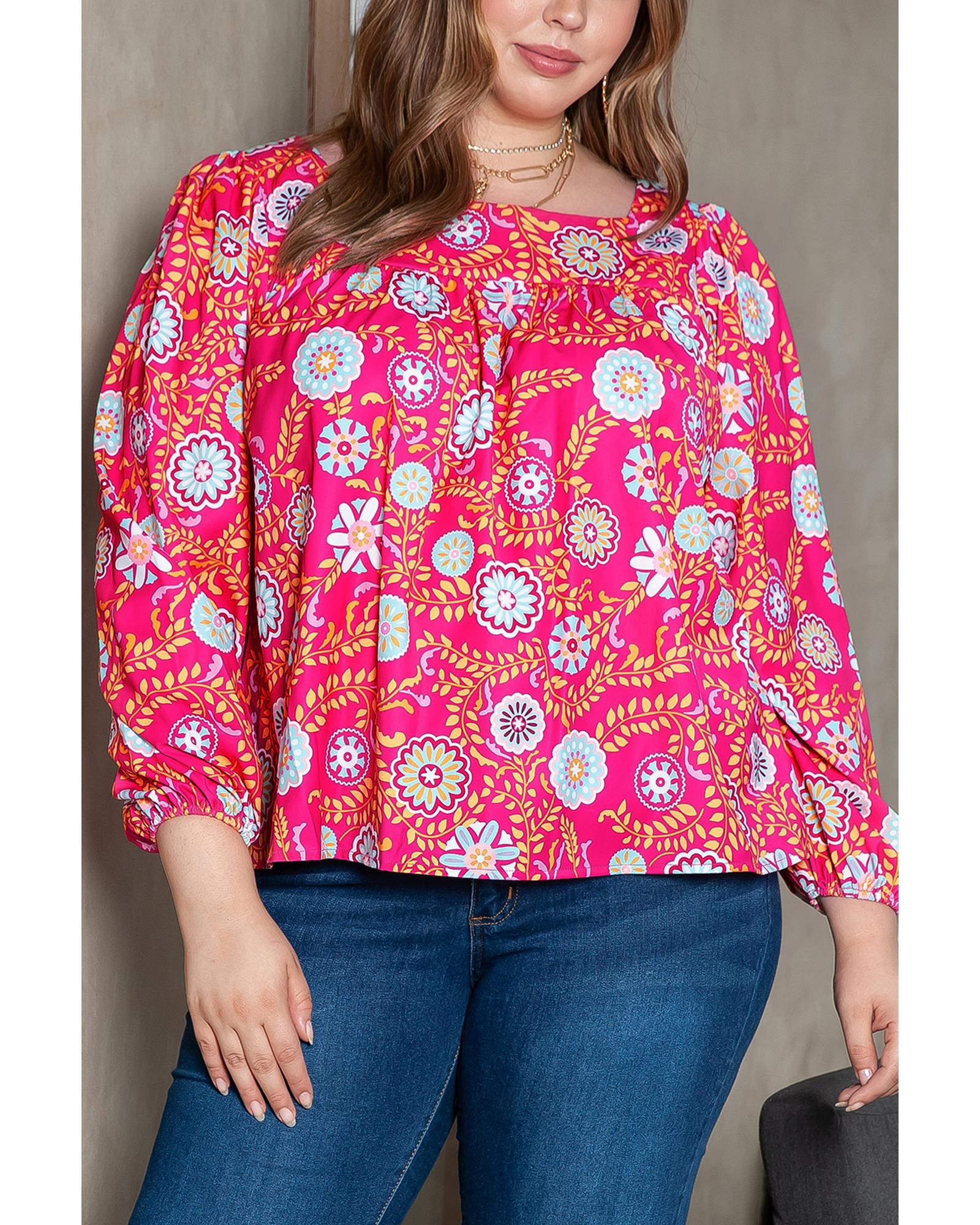 Pink Plus Size Square Neck Floral Blouse – 2X