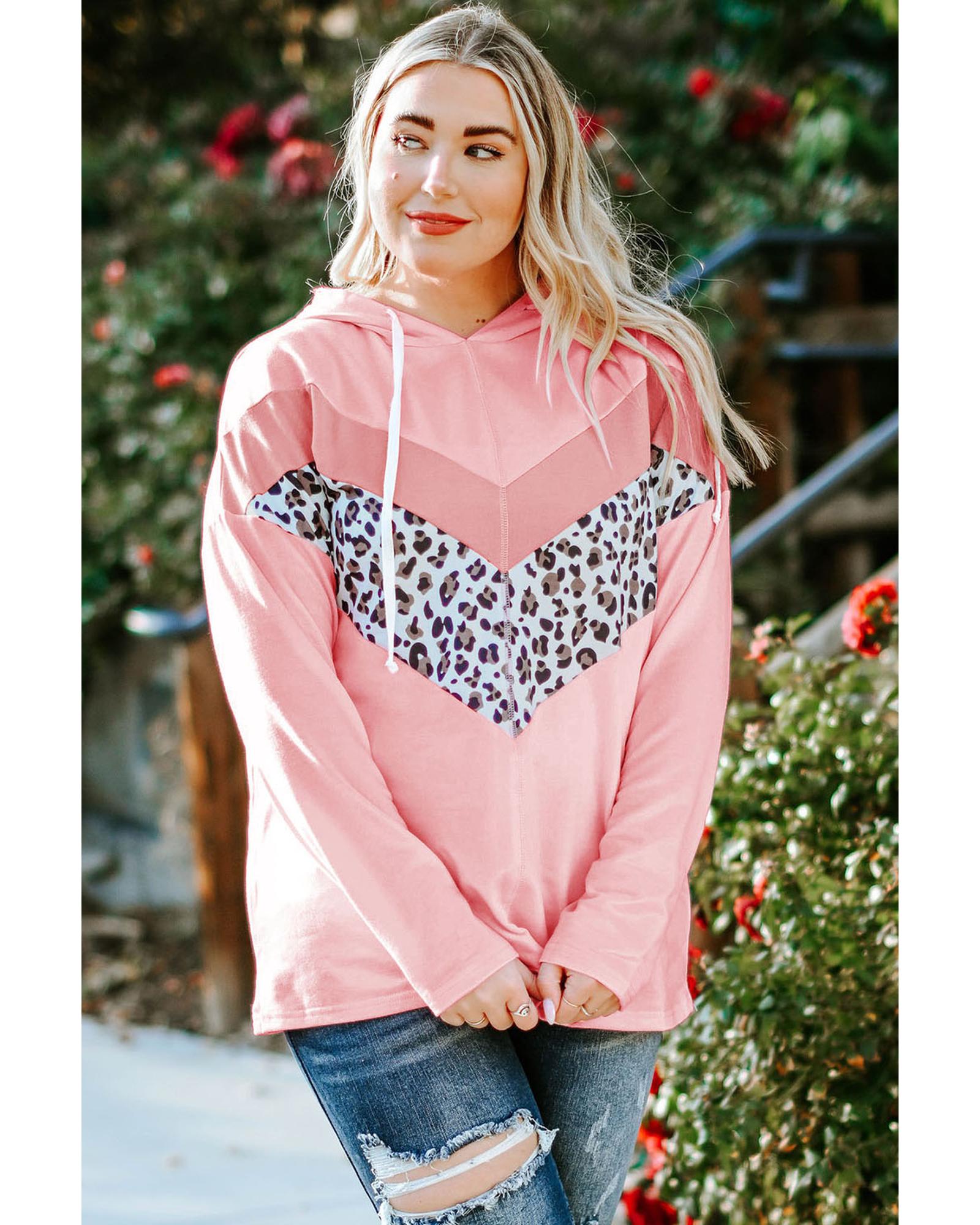 - Chevron design with colorblock and leopard patchwork on the front