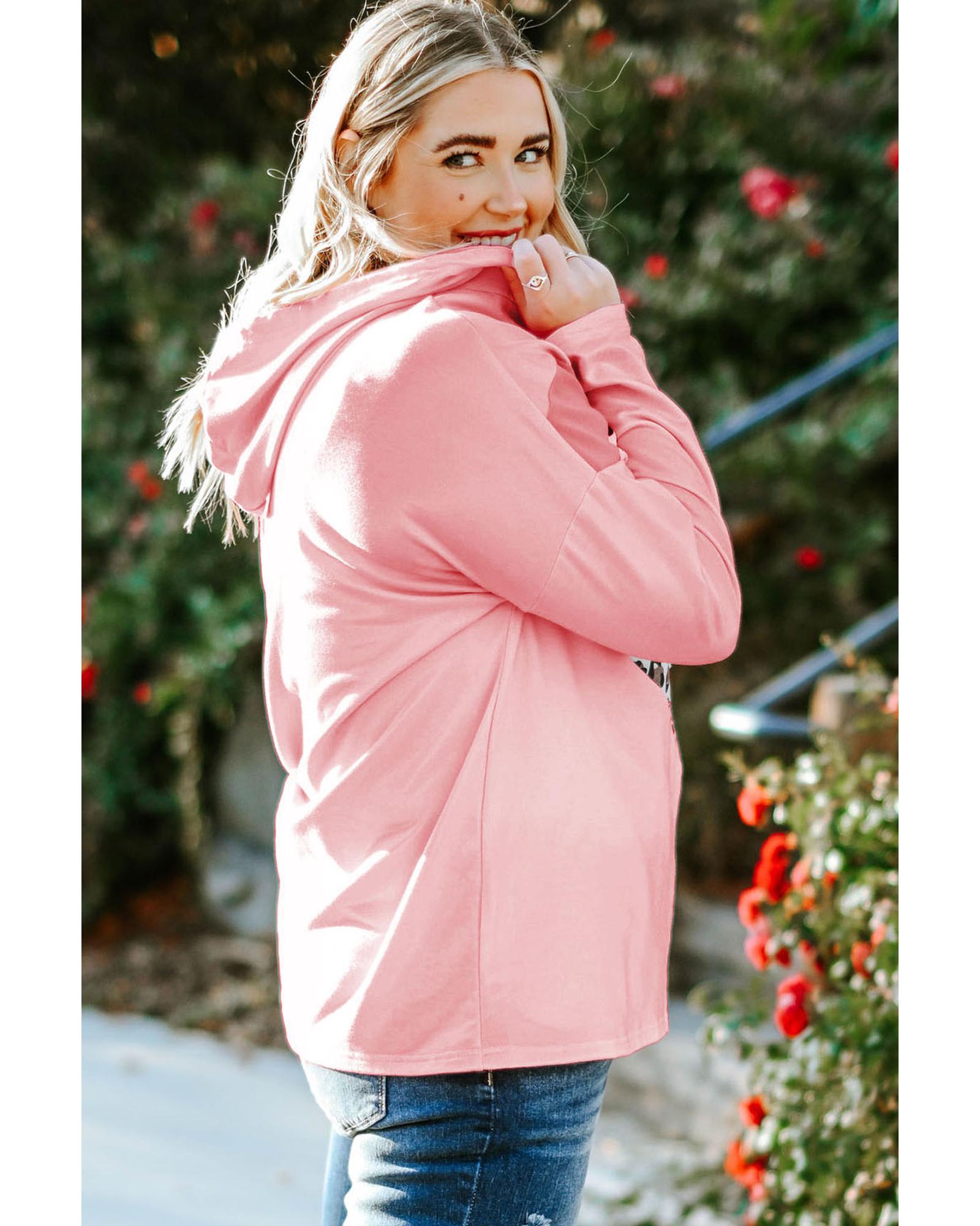 Pink Plus Size Taupe Chevron Hooded Top – 4X