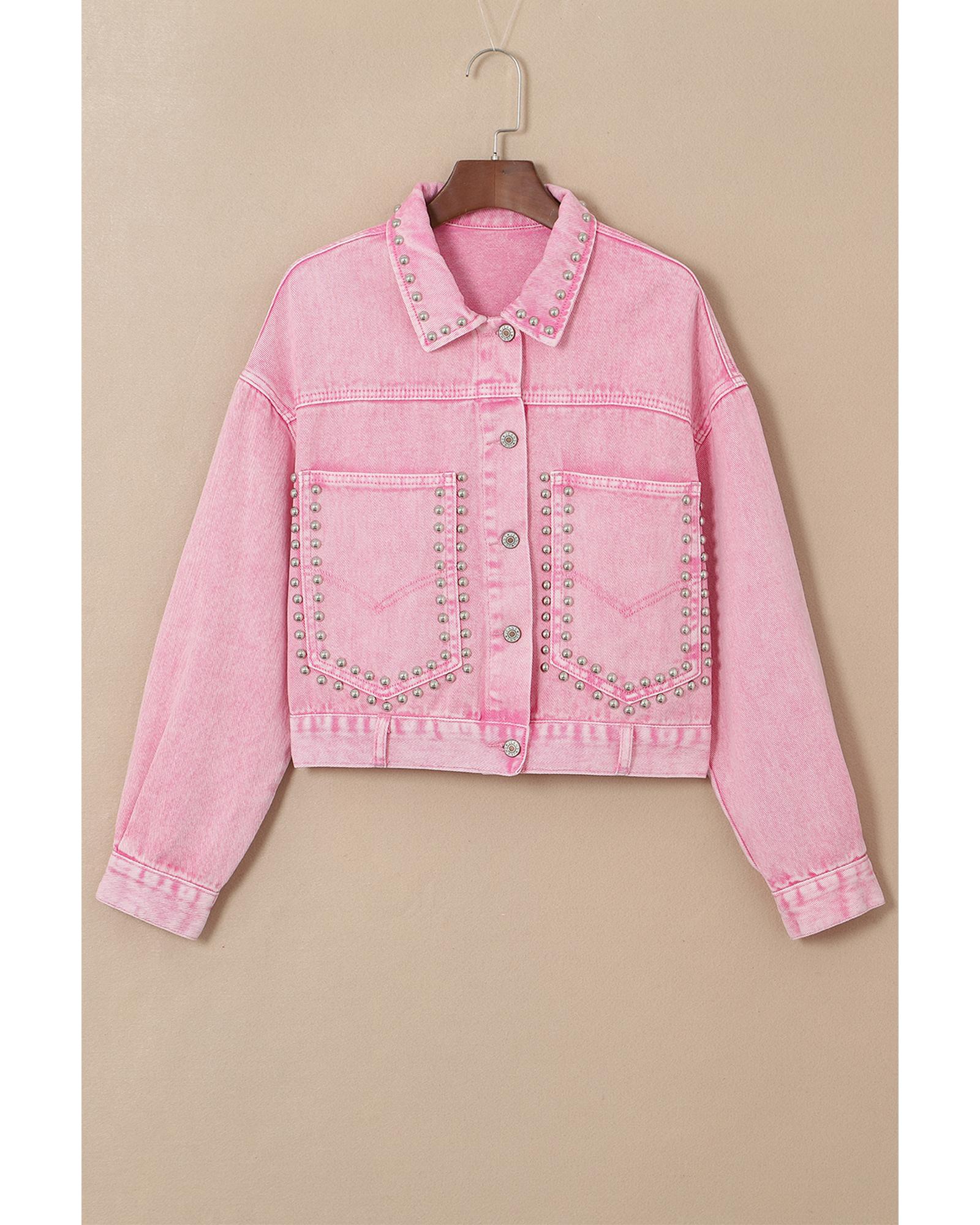 Pink Rivet Studded Pocketed Denim Jacket – XL