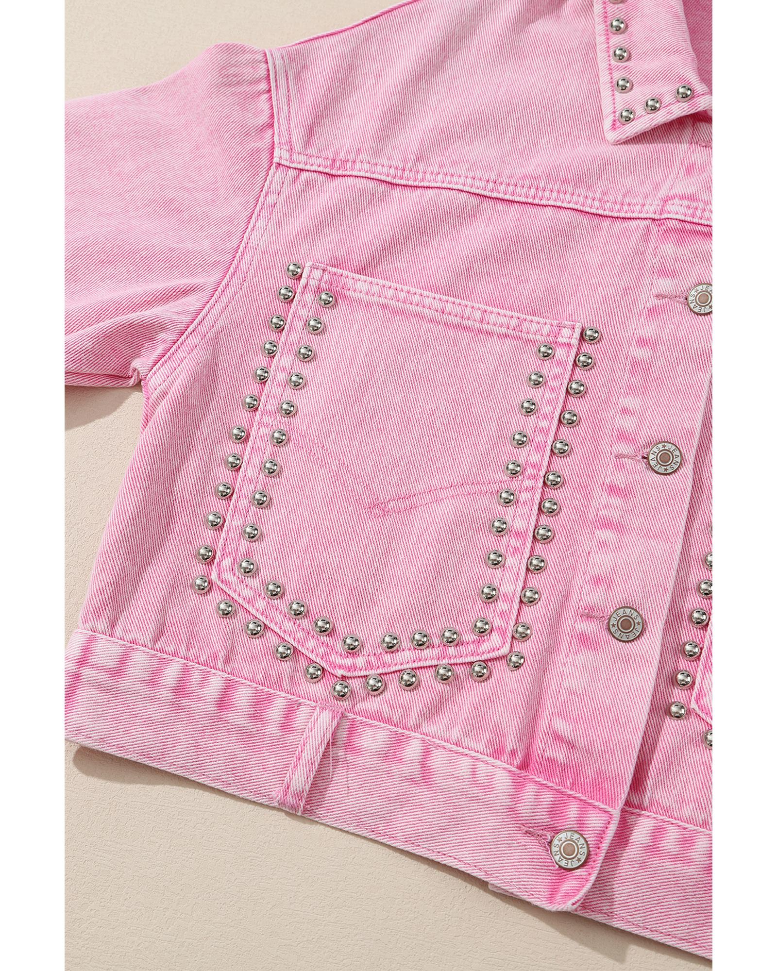 Pink Rivet Studded Pocketed Denim Jacket - S