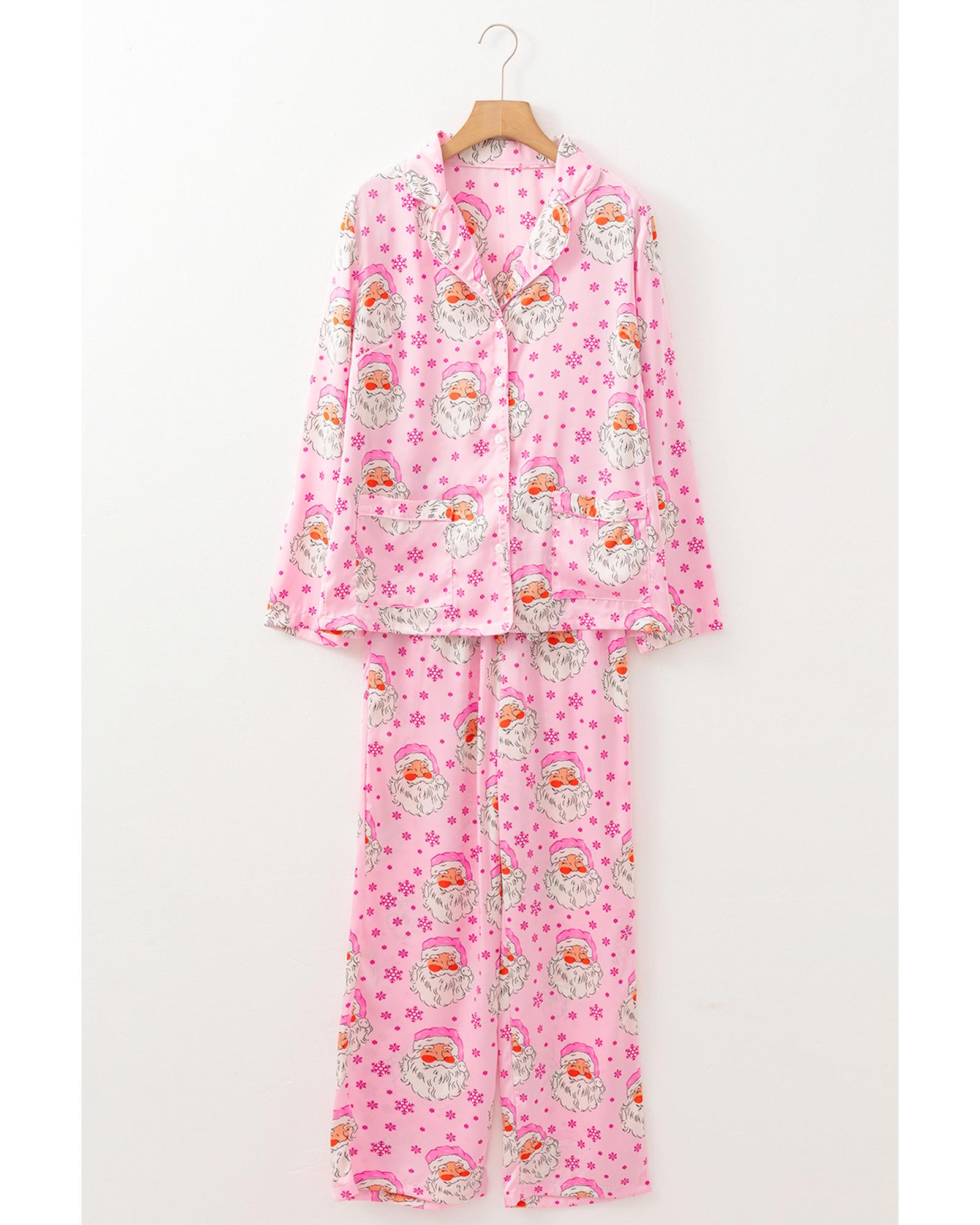 Pink Santa Claus Snowflake Long Sleeve Shirt Christmas Pajama Set – M