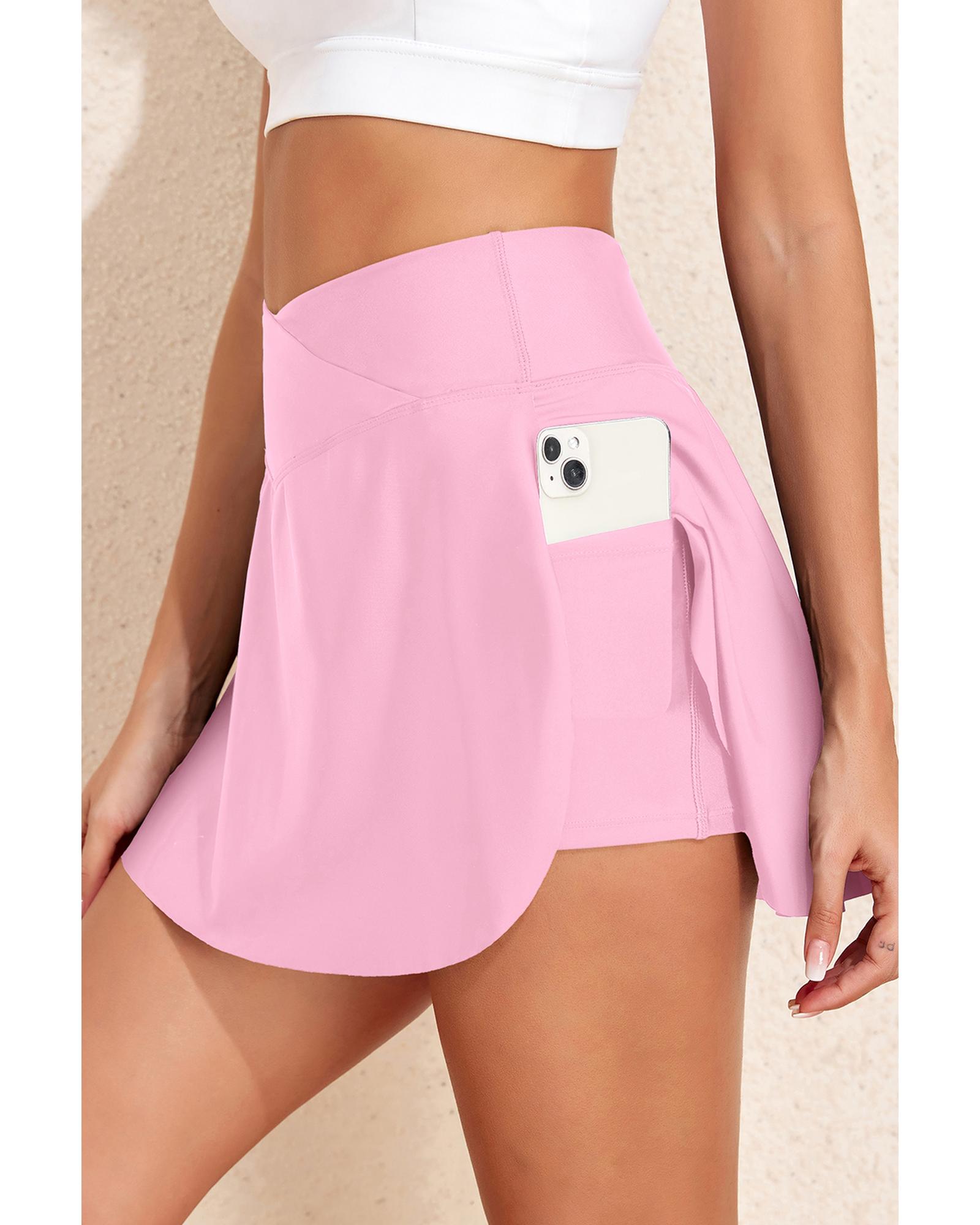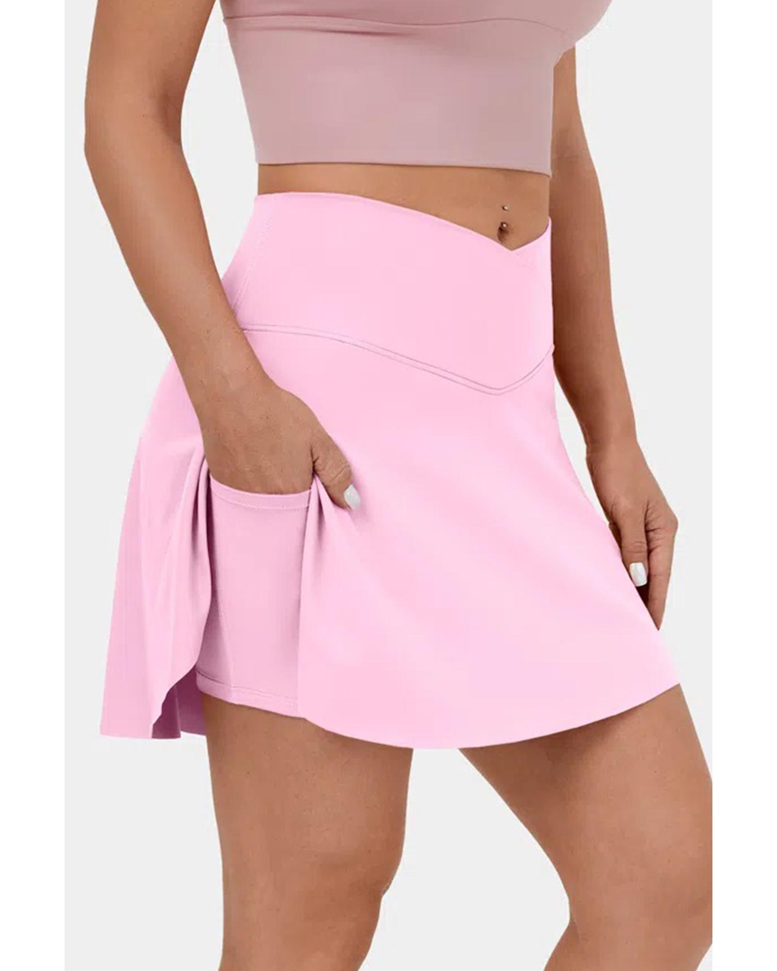 Pink Solid Pocketed Crossover High Waist Swim Skort – XL