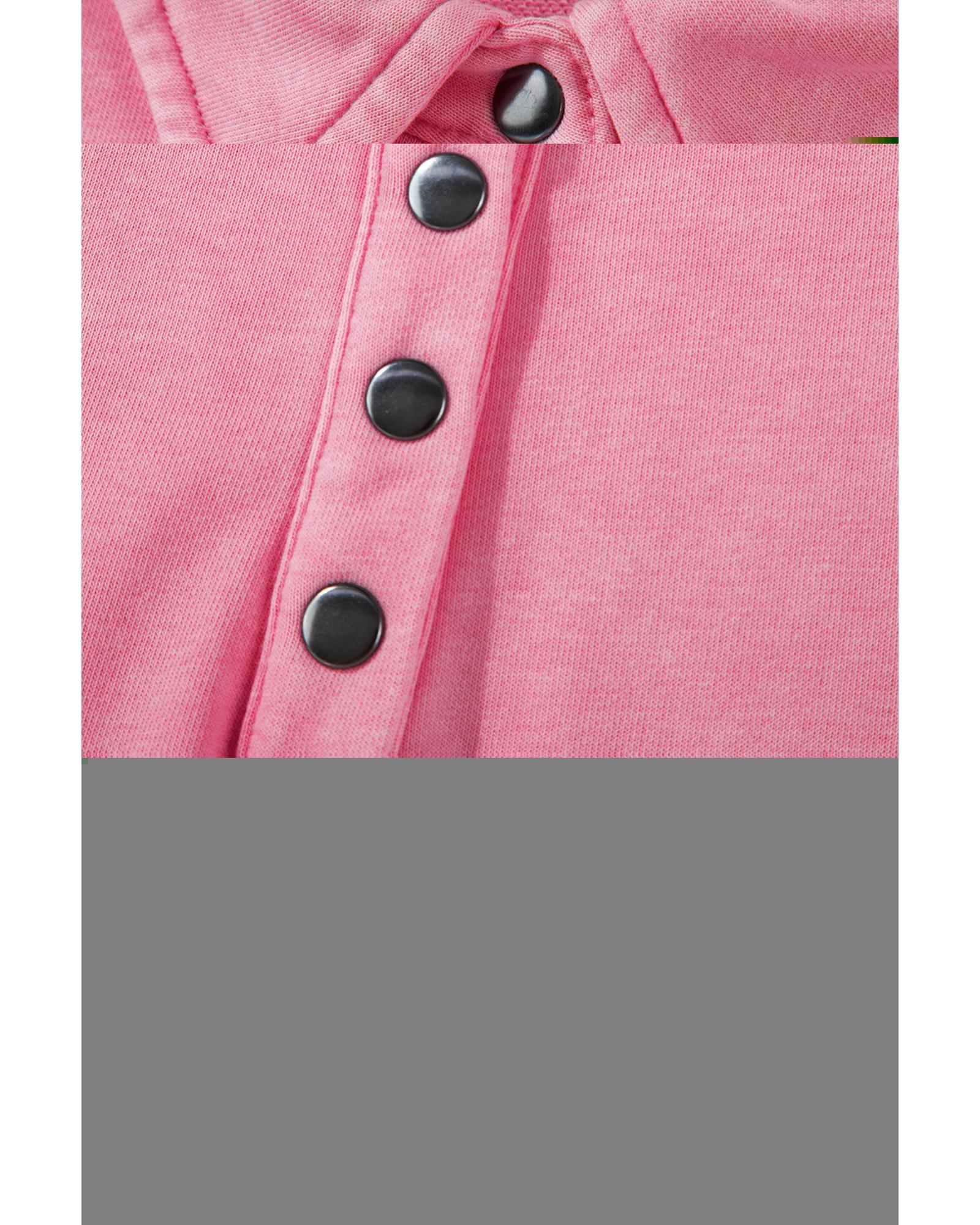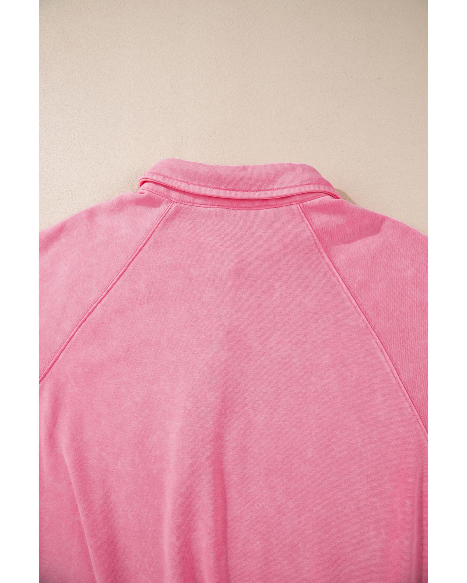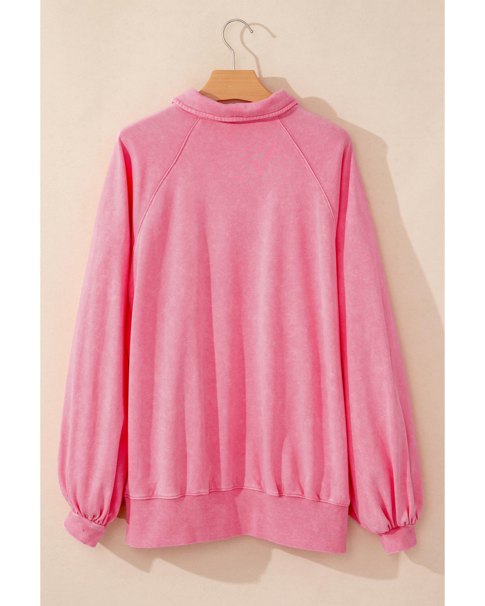 Pink Solid Snap Buttons Collared Balloon Sleeve Oversized Sweatshirt – M