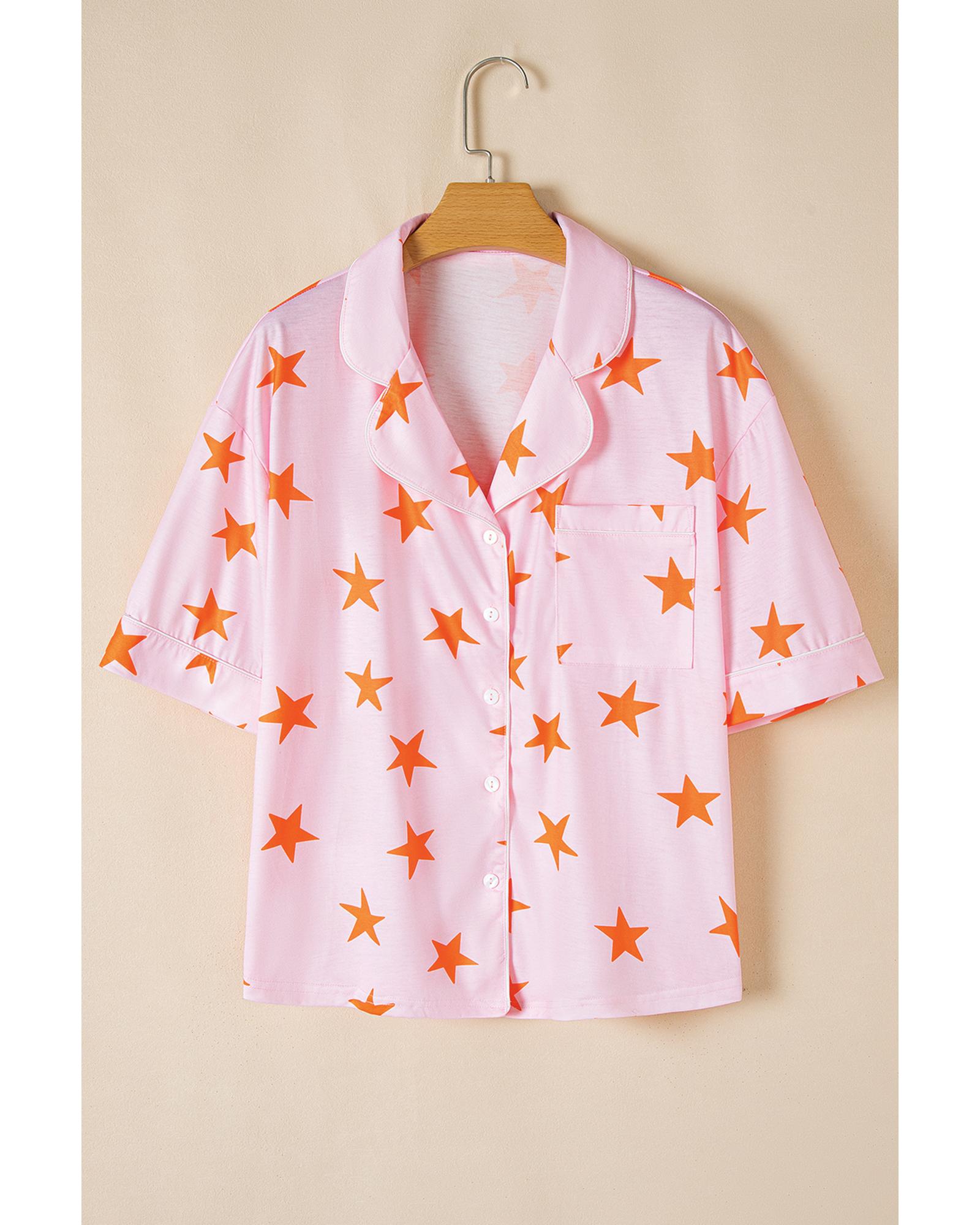 Pink Stars Short Sleeve Shirt and Shorts Bamboo Pajama Set – M