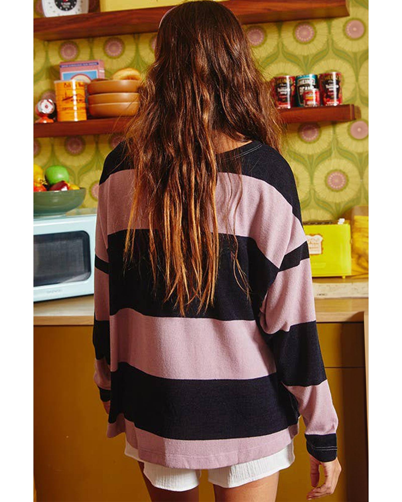 Pink Stripe Color Block Number 22 Print Game Day Loose Long Sleeve Top – L
