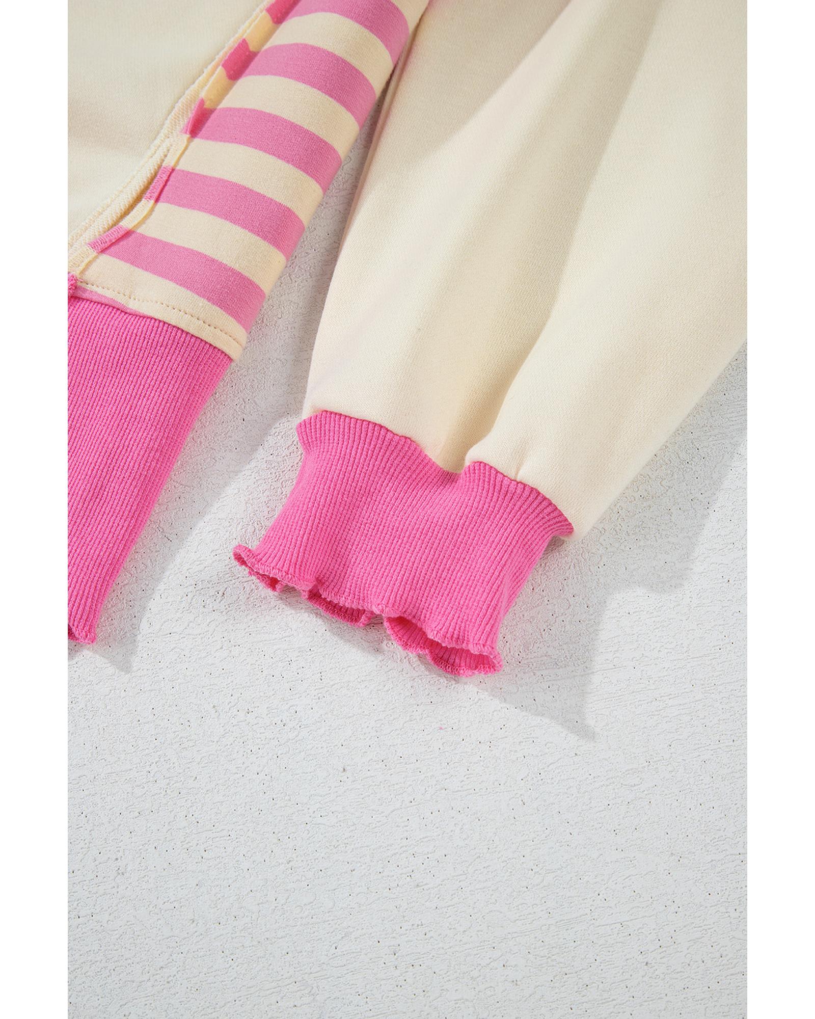 Pink Stripe Colorblock Patchwork Collared French Terry Knit Top – L