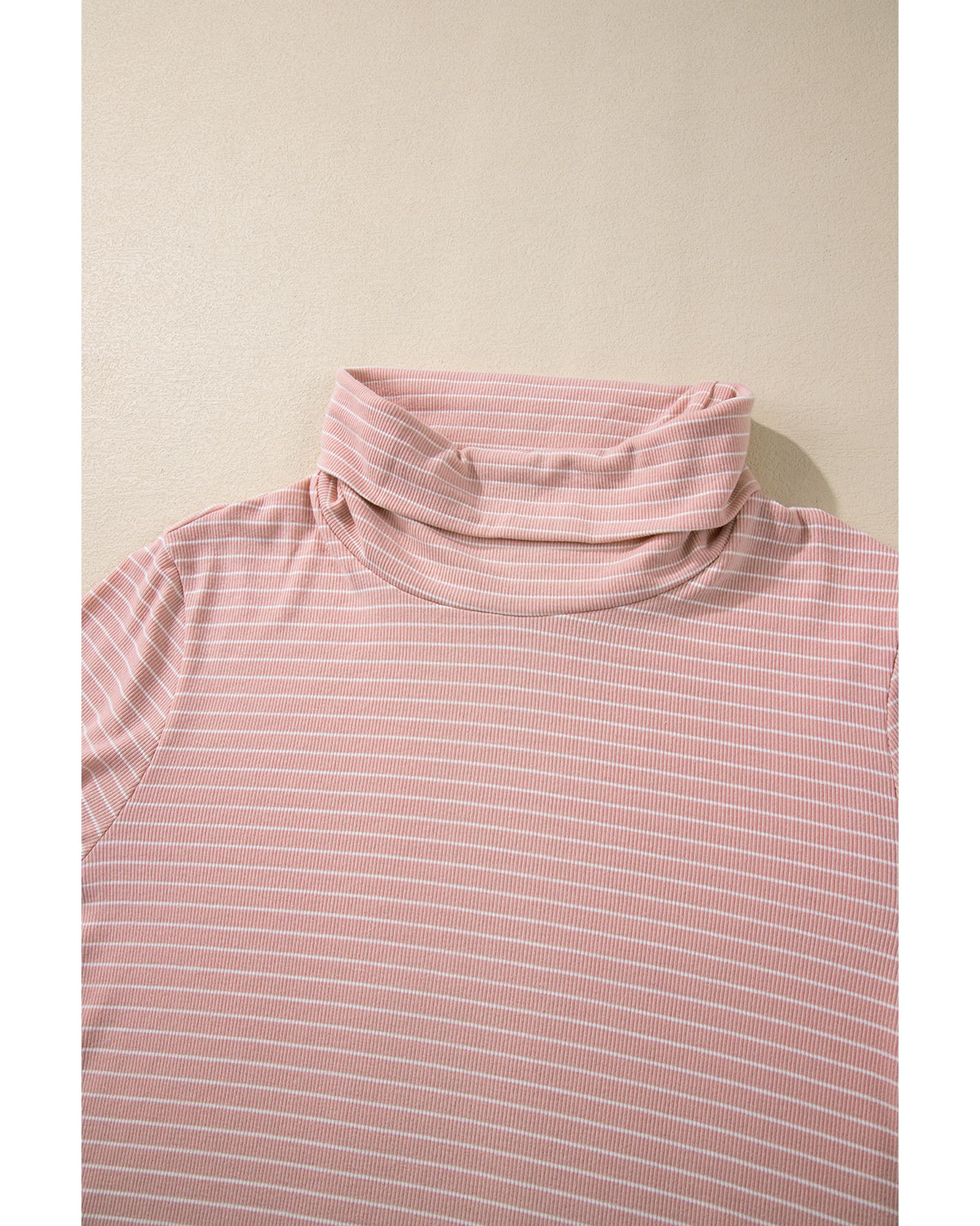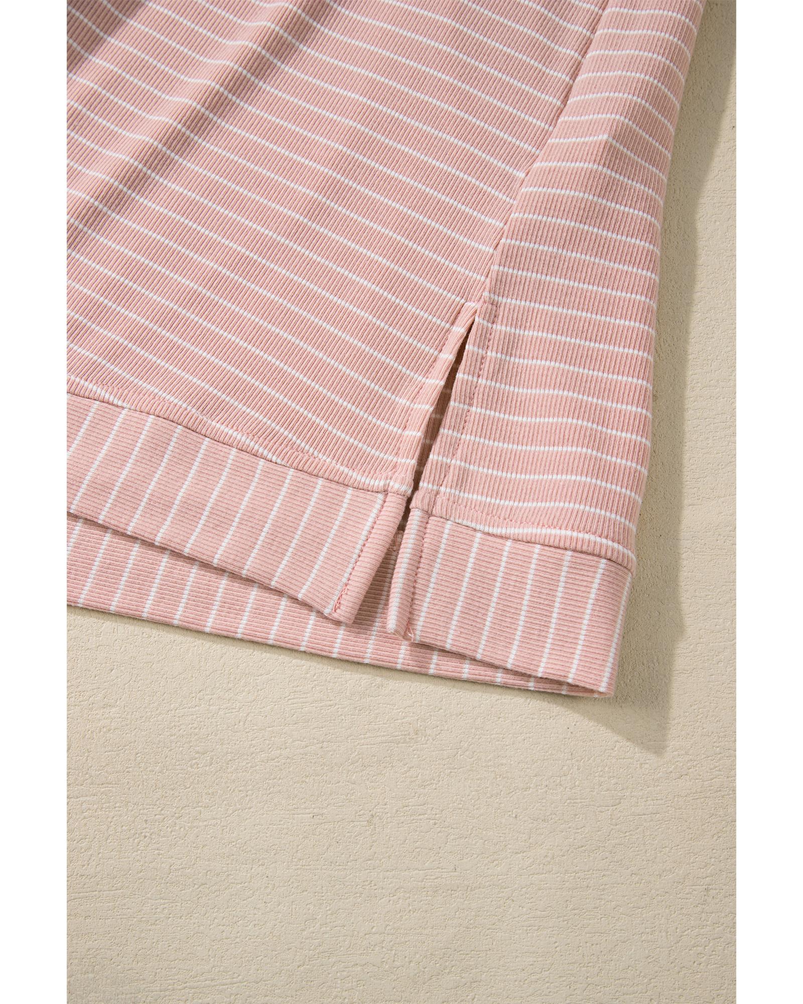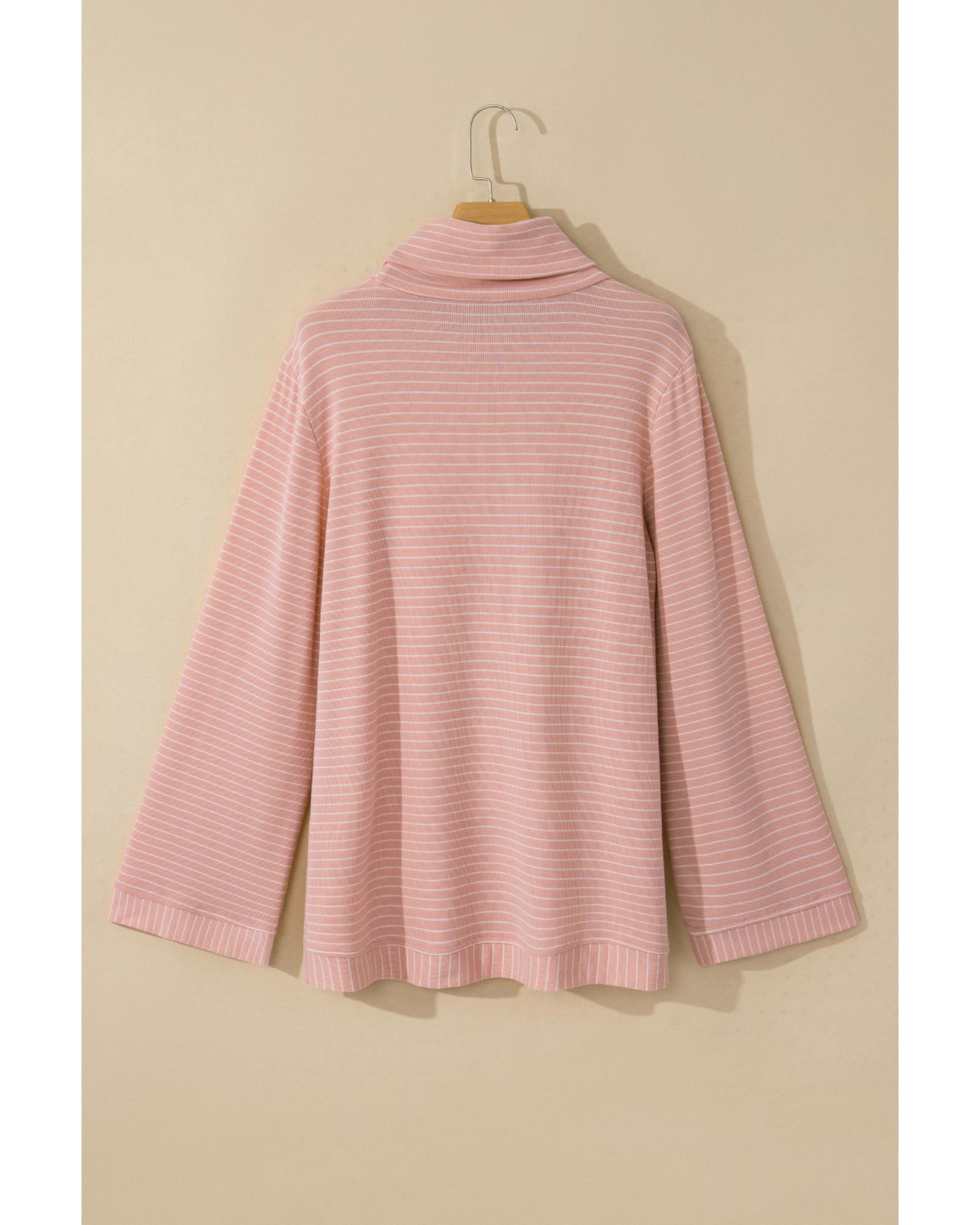 Pink Stripe Cowl Neck Side Slits Loose Fit Long Sleeve Top – M