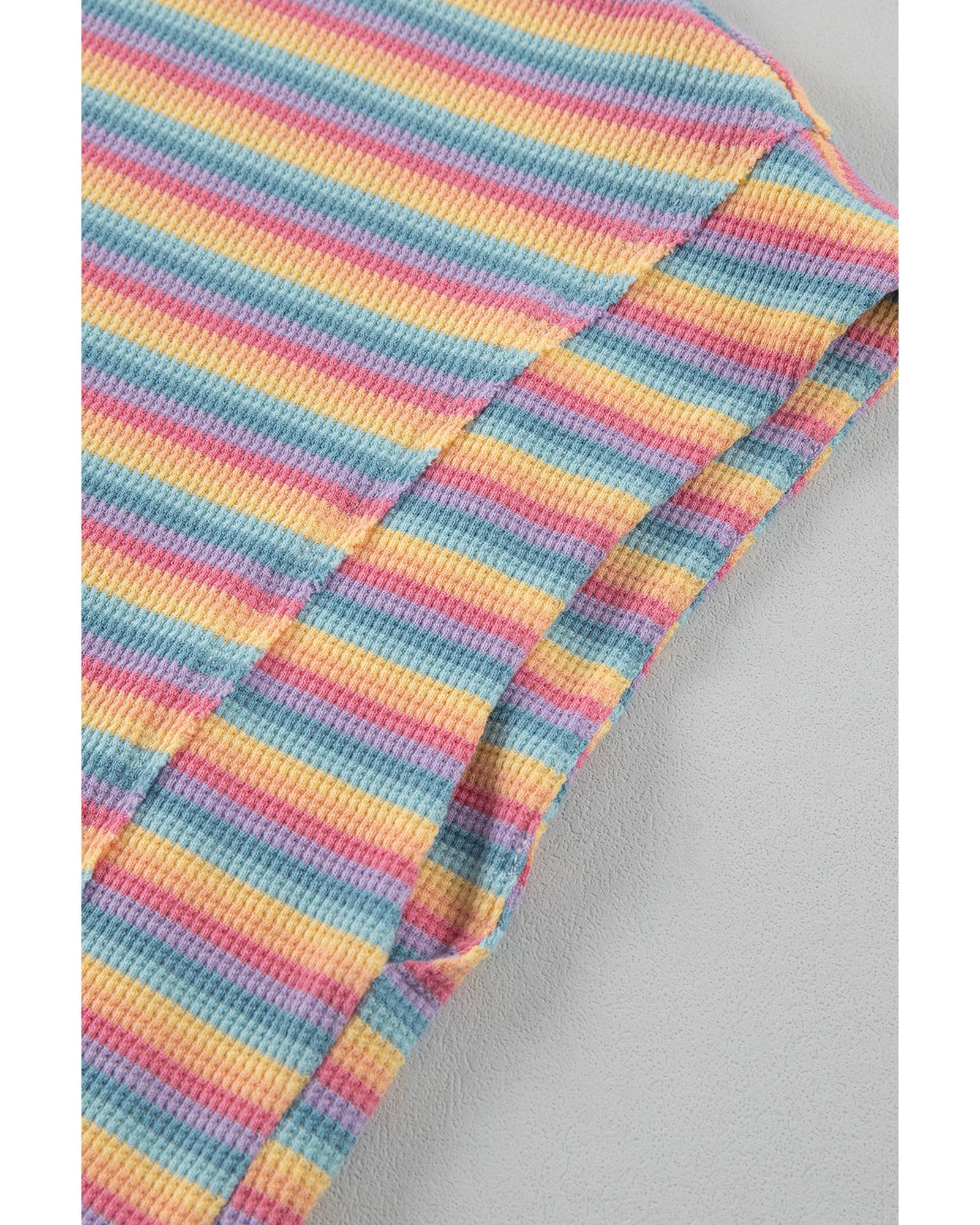 Pink Stripe Crew Neck Tee and Tasseled Drawstring Shorts Set – L