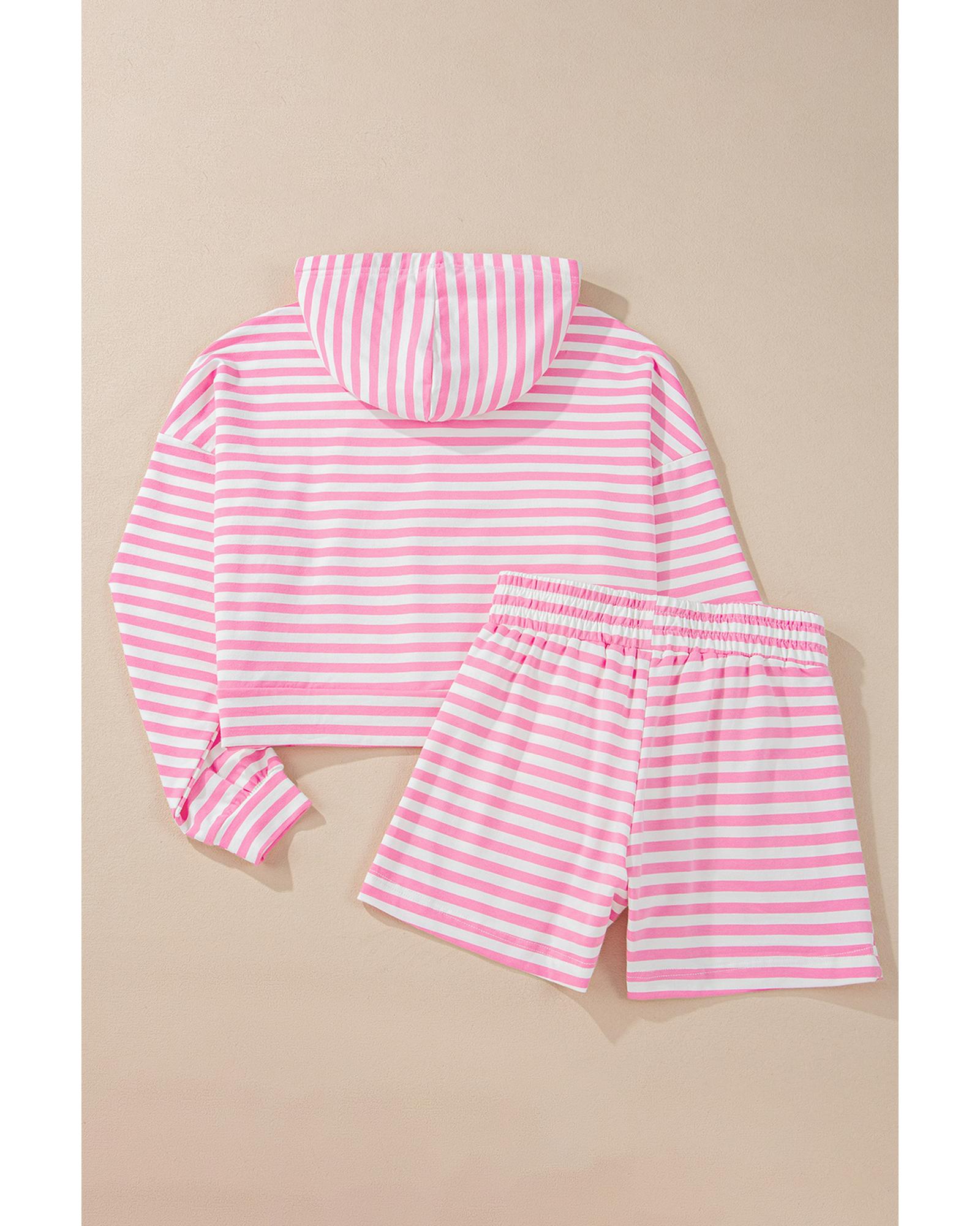 Pink Stripe Kangaroo Pocket Hoodie and Wide Leg Shorts Set – XL