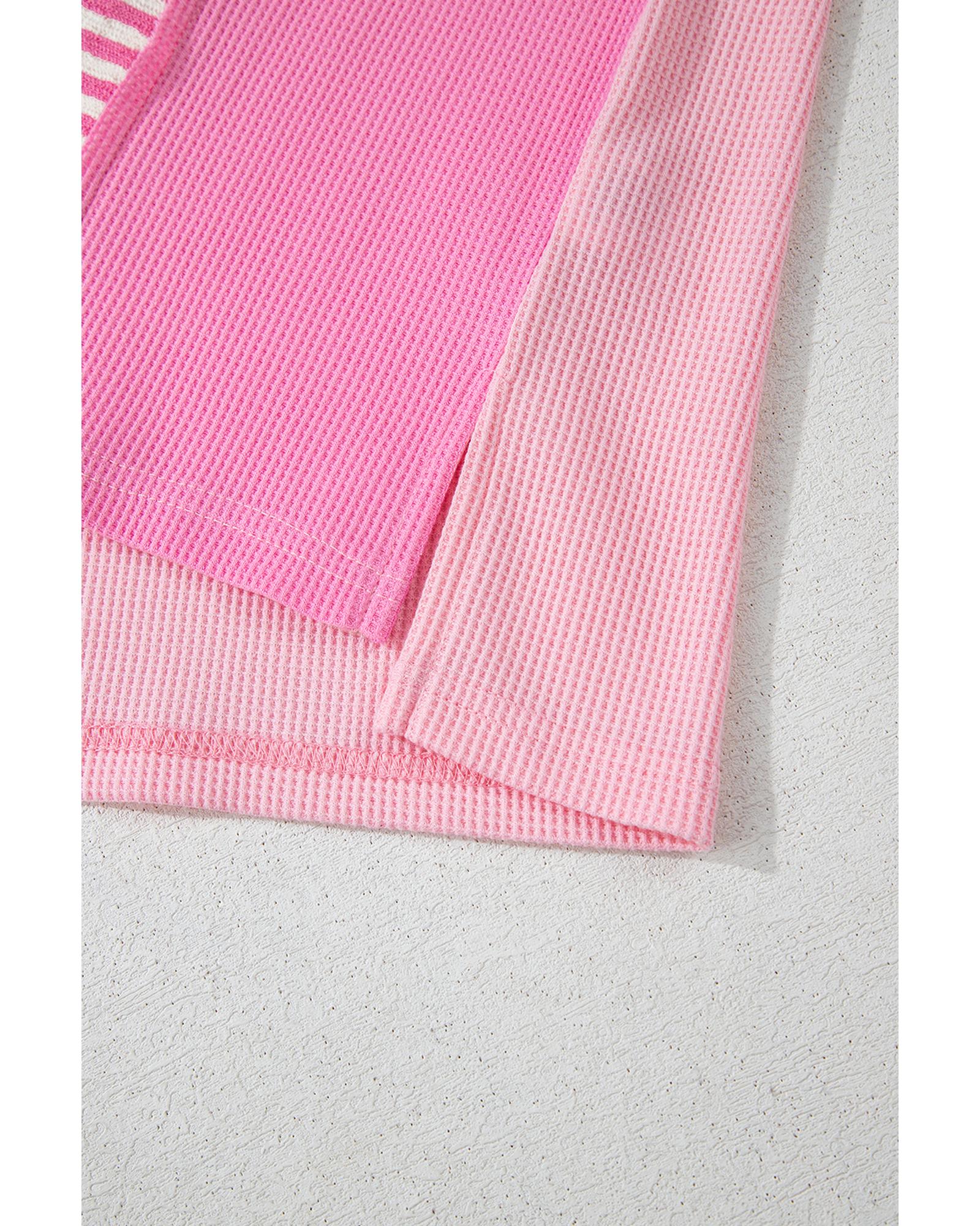 Pink Stripe Patchwork Colorblock Plus Size T Shirt – 1X