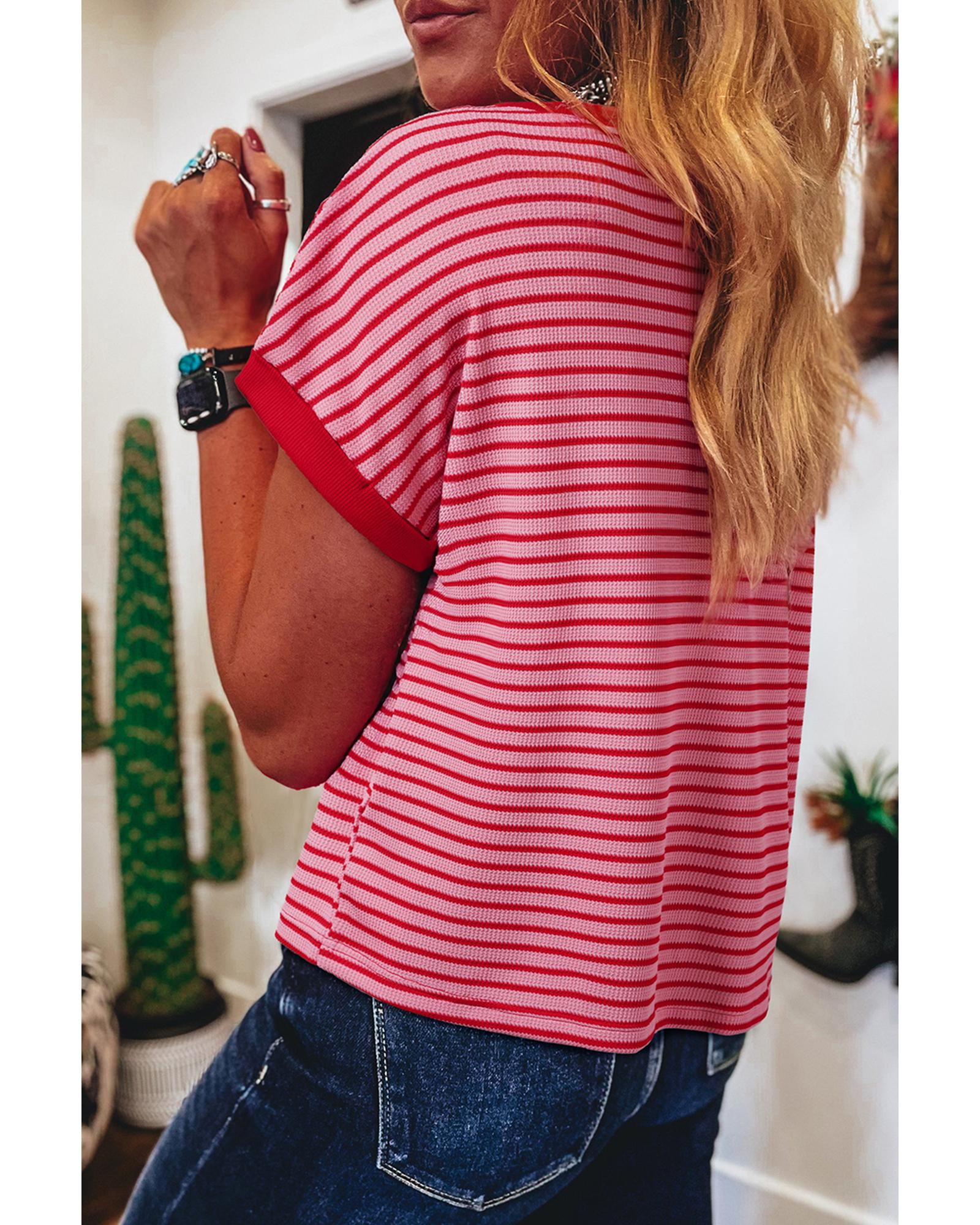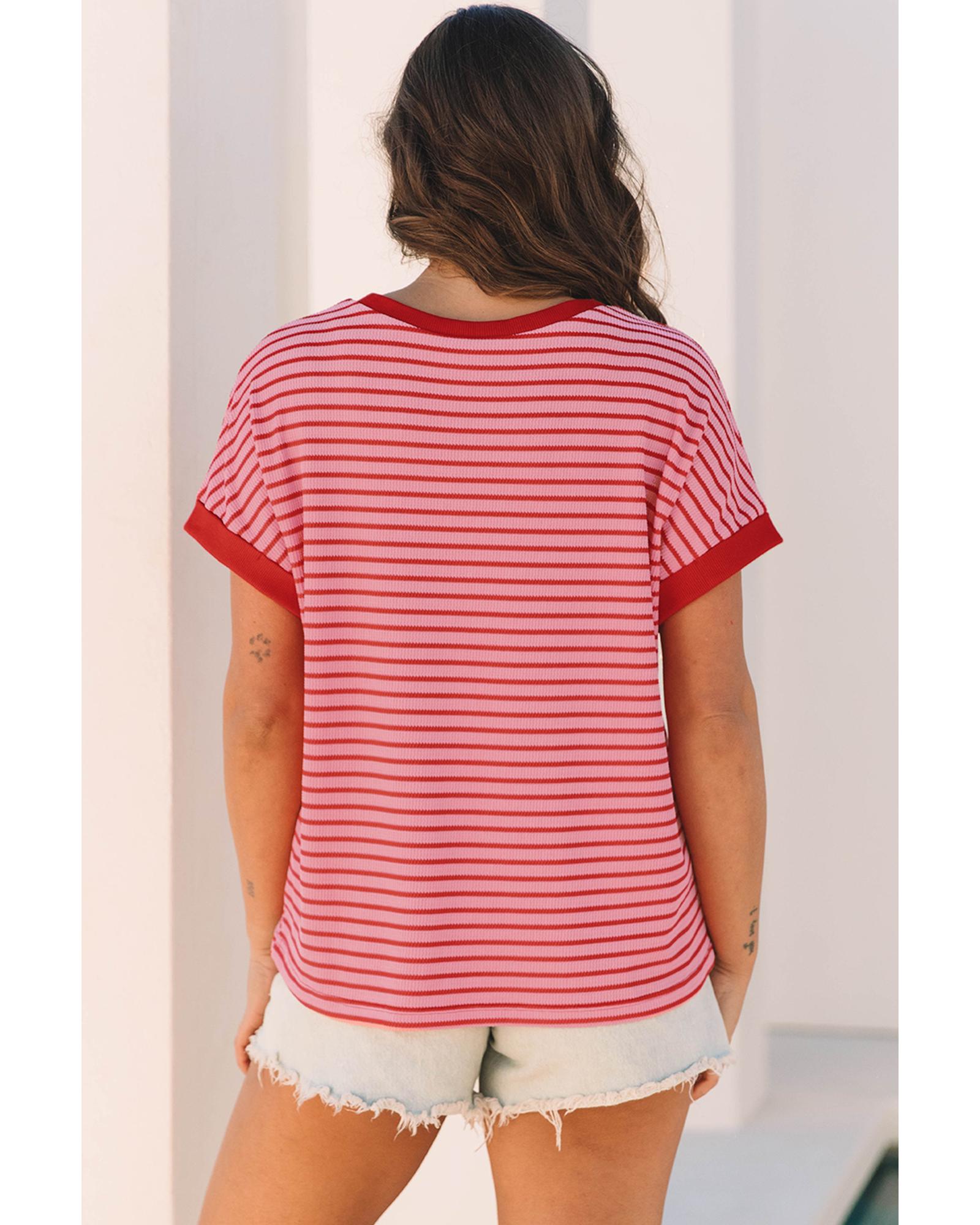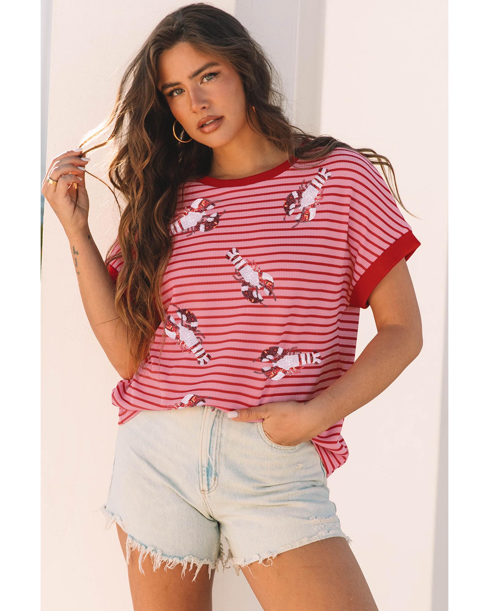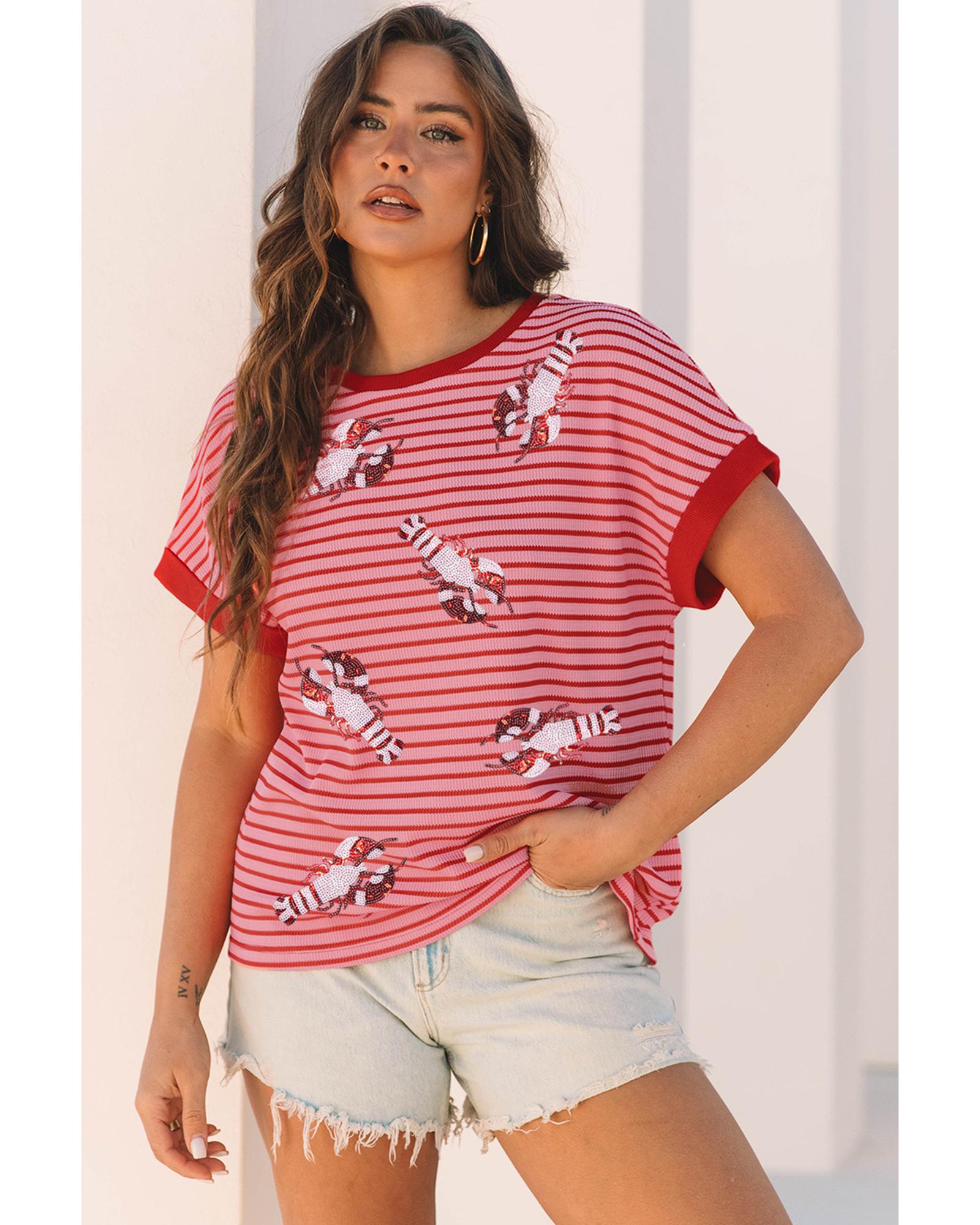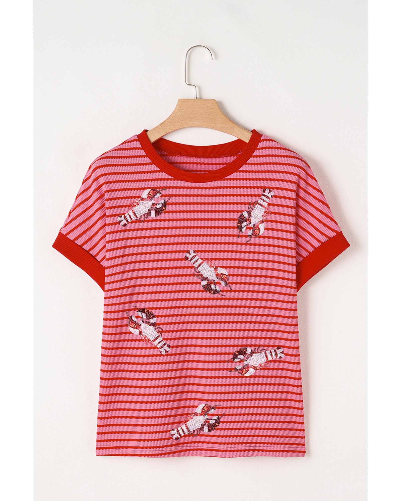 Pink Stripe Sequin Crawfish Crewneck T Shirt – S