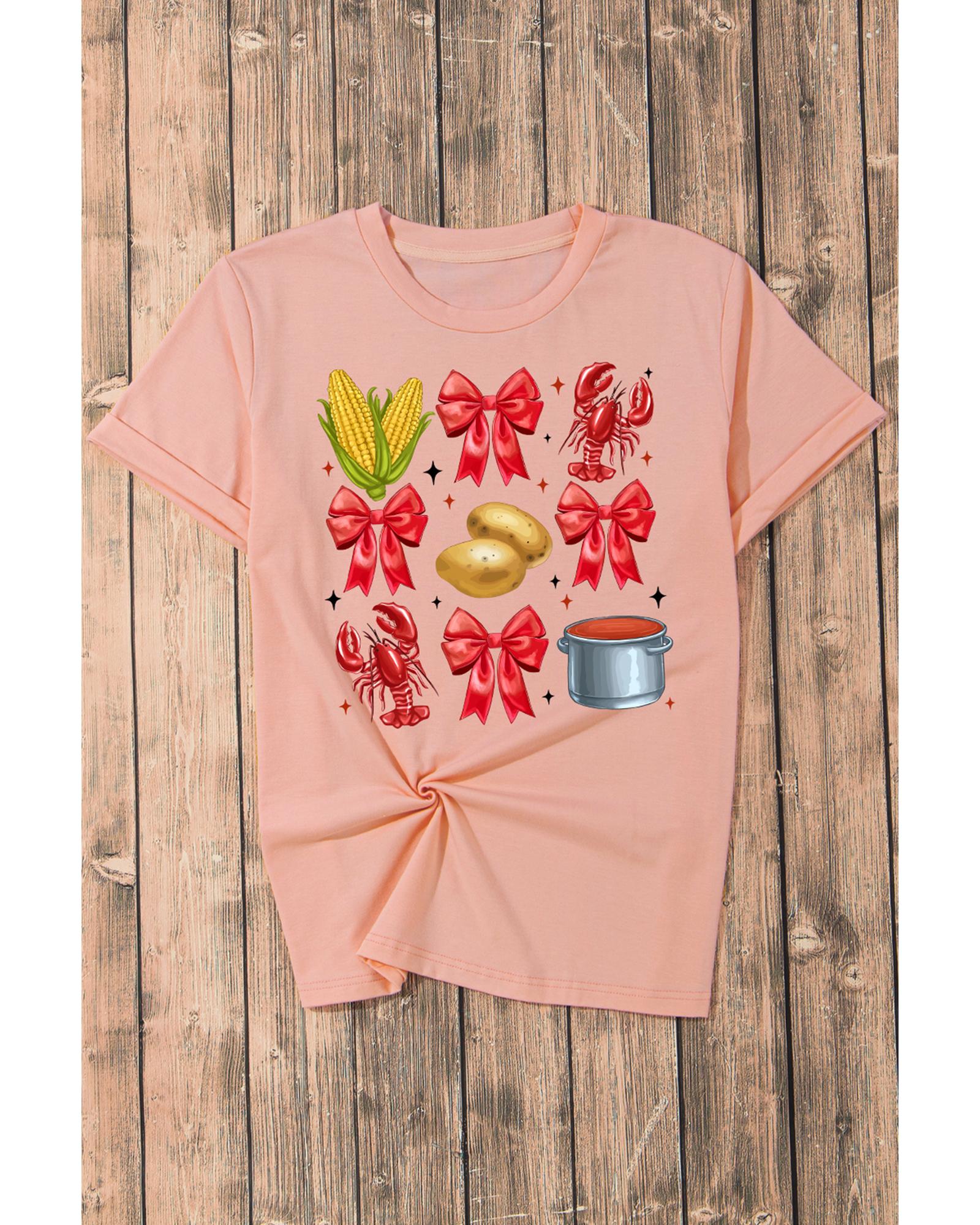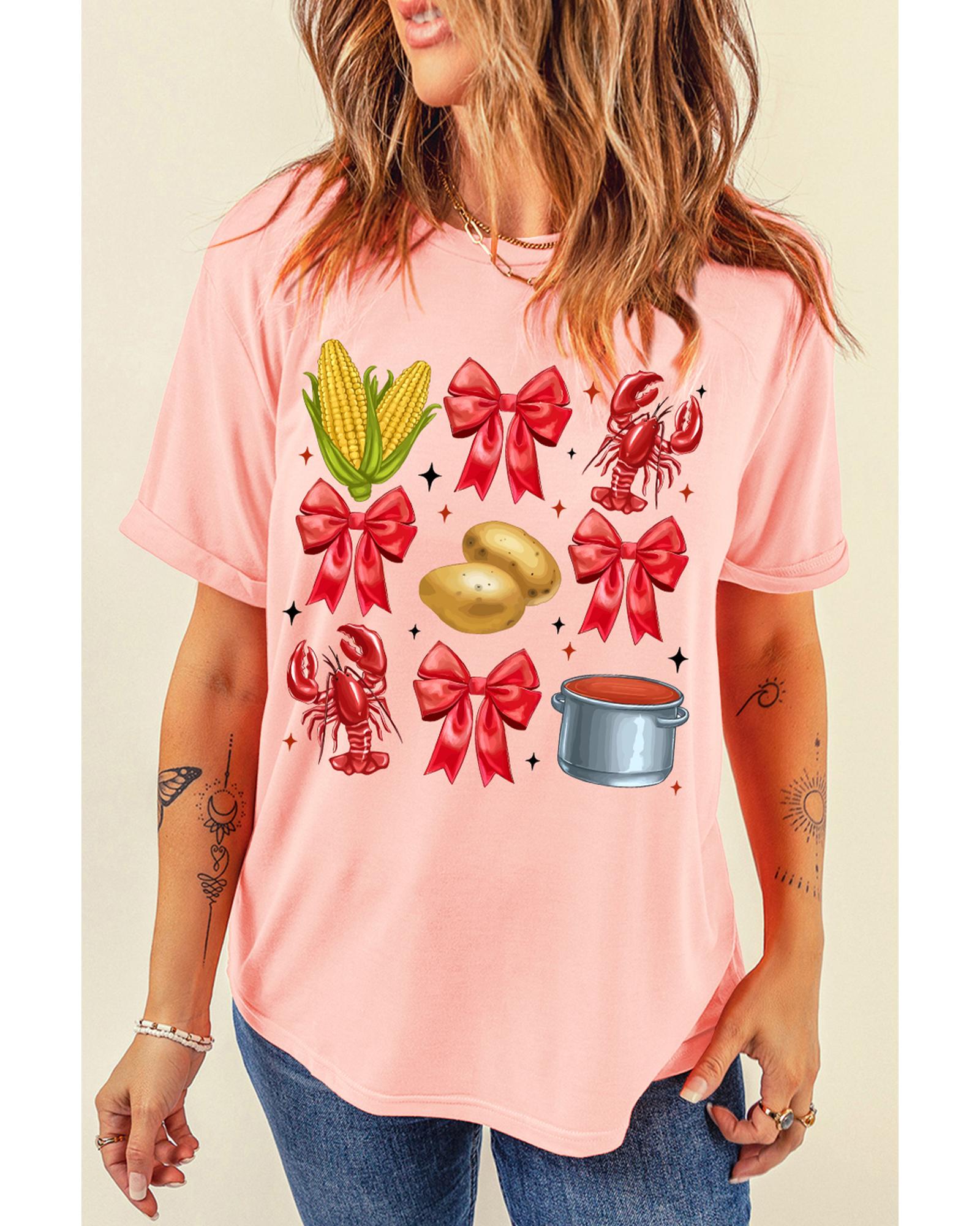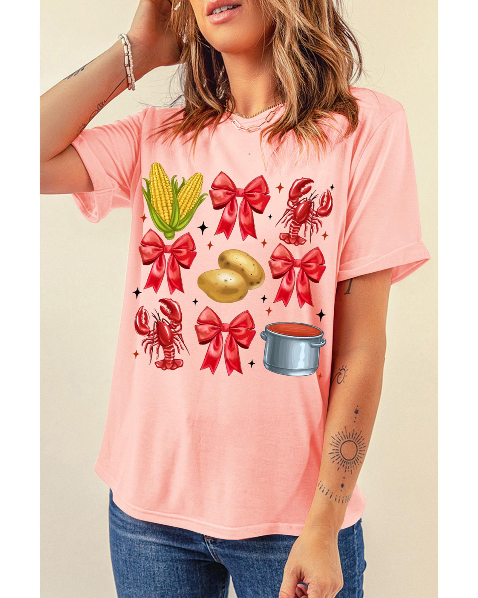 Pink Summer Food Bow Crawfish Printed T Shirt – S