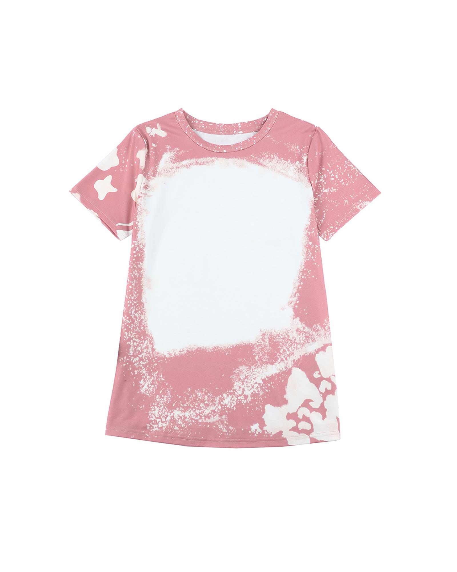 • Comfy Pink Tie Dye Color Bleached Short Sleeve T Shirt