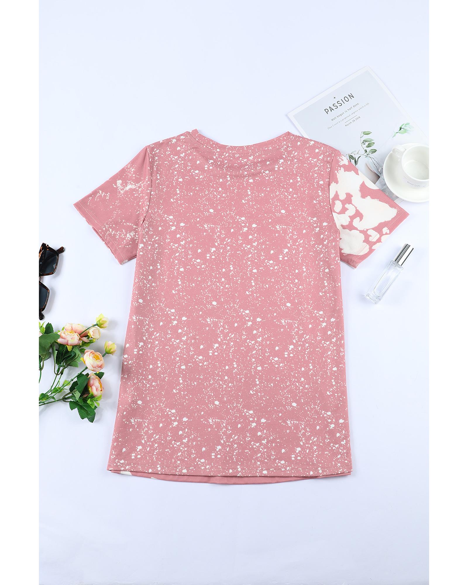 - Comfy Pink Tie Dye Color Bleached Short Sleeve T Shirt