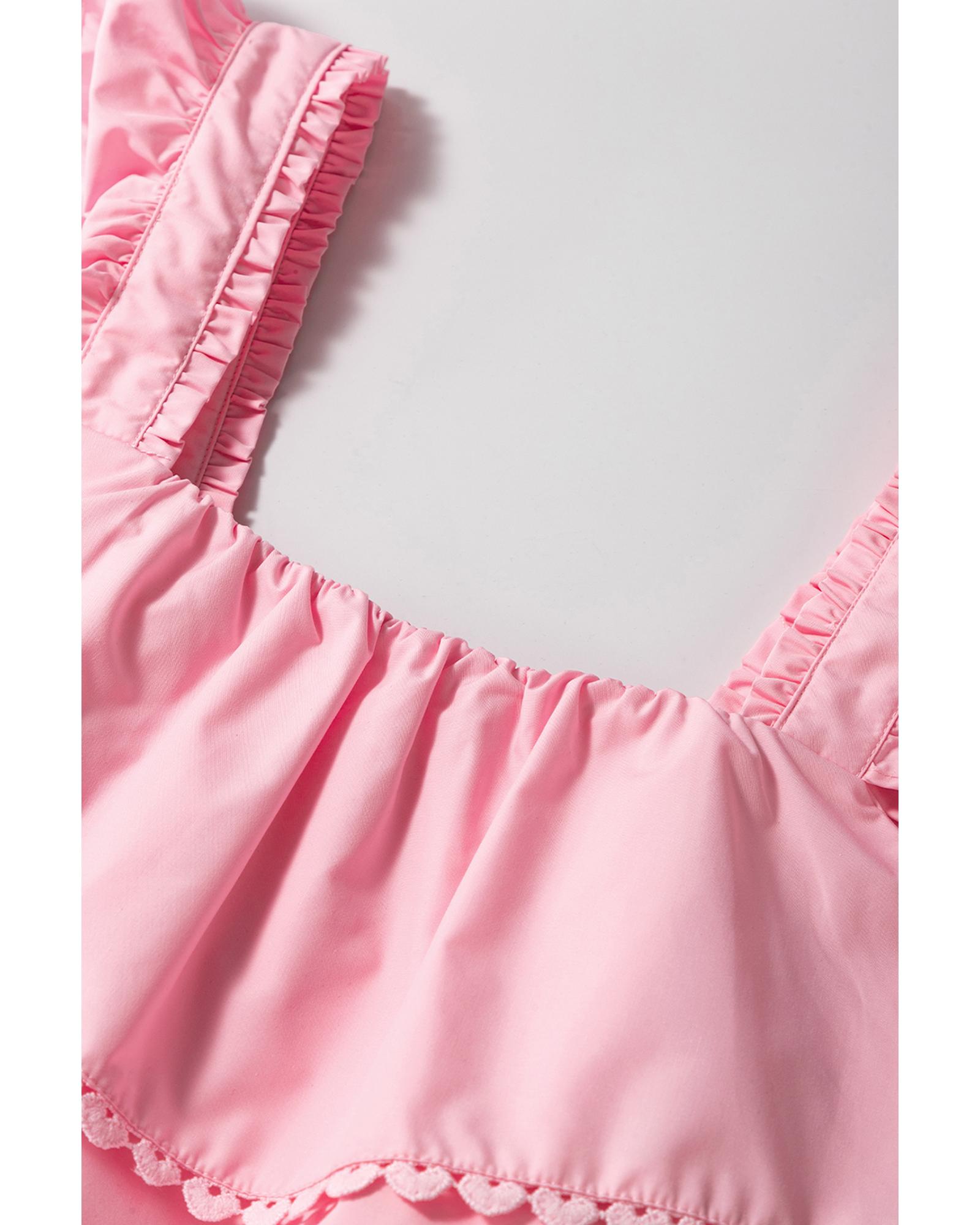Pink Tiered Heart Trim Square Neck Flutter Top – XL