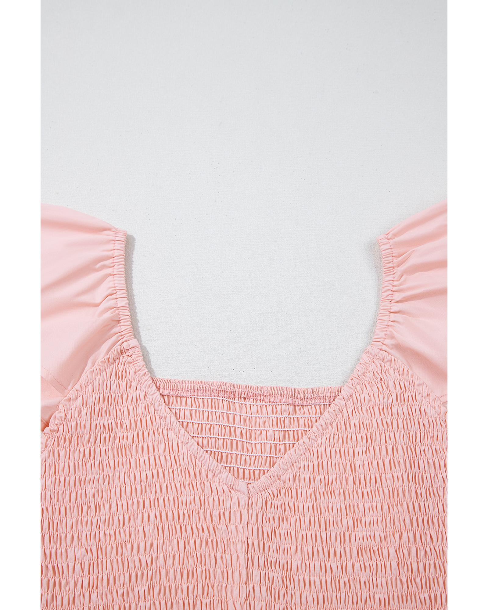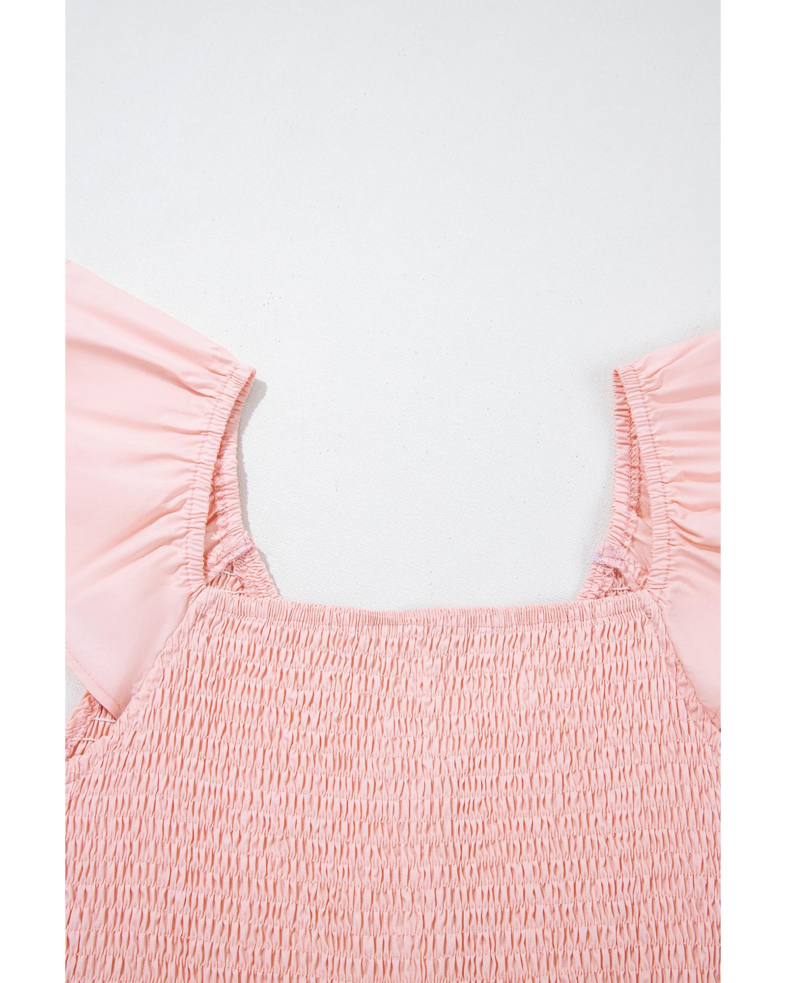 Pink V Neck Flutter Sleeve Smocked Bodice High Waist Ruffle Maxi Dress - XL