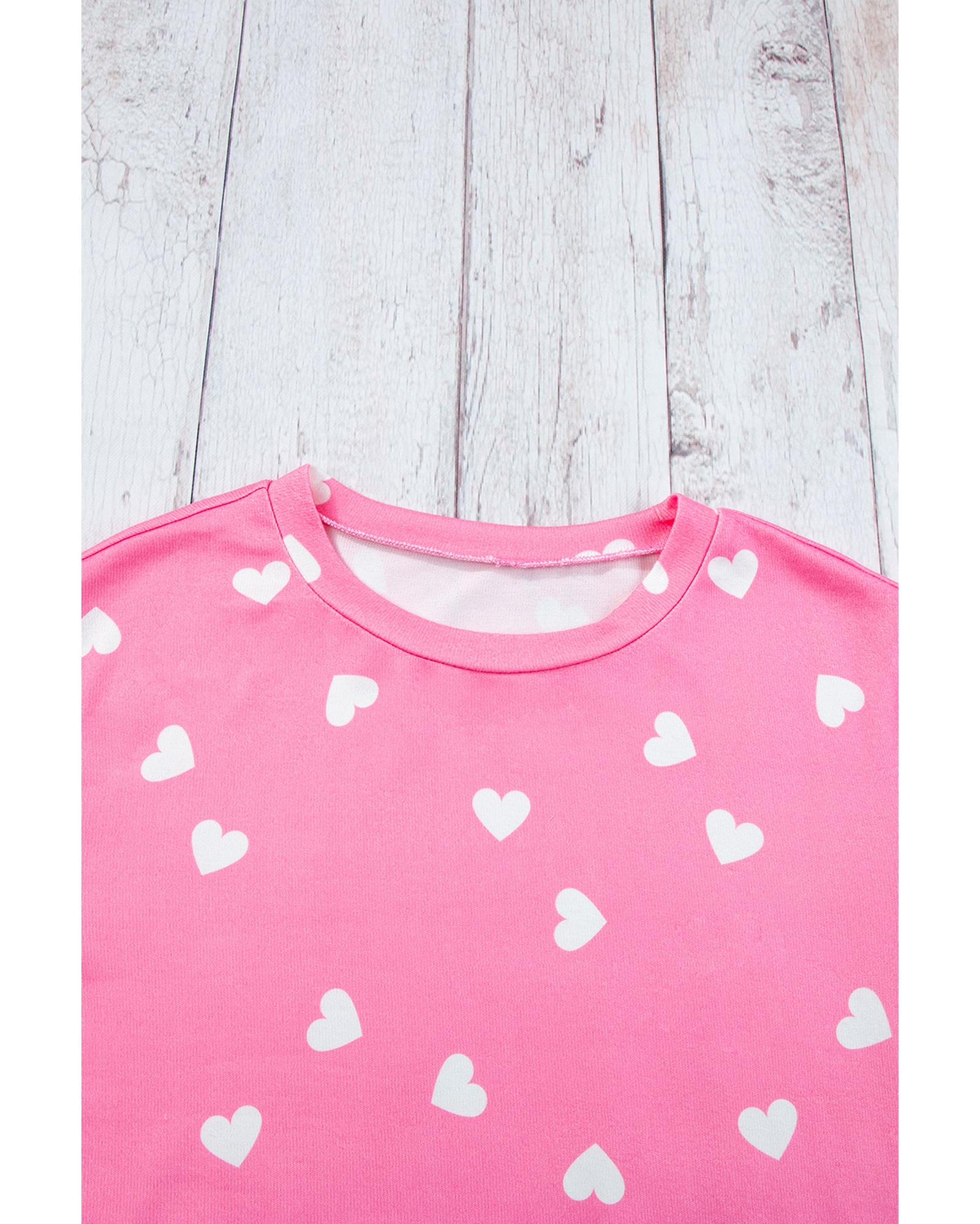 - Pink Valentine Heart Print Long Sleeve Tee and Shorts Lounge Set