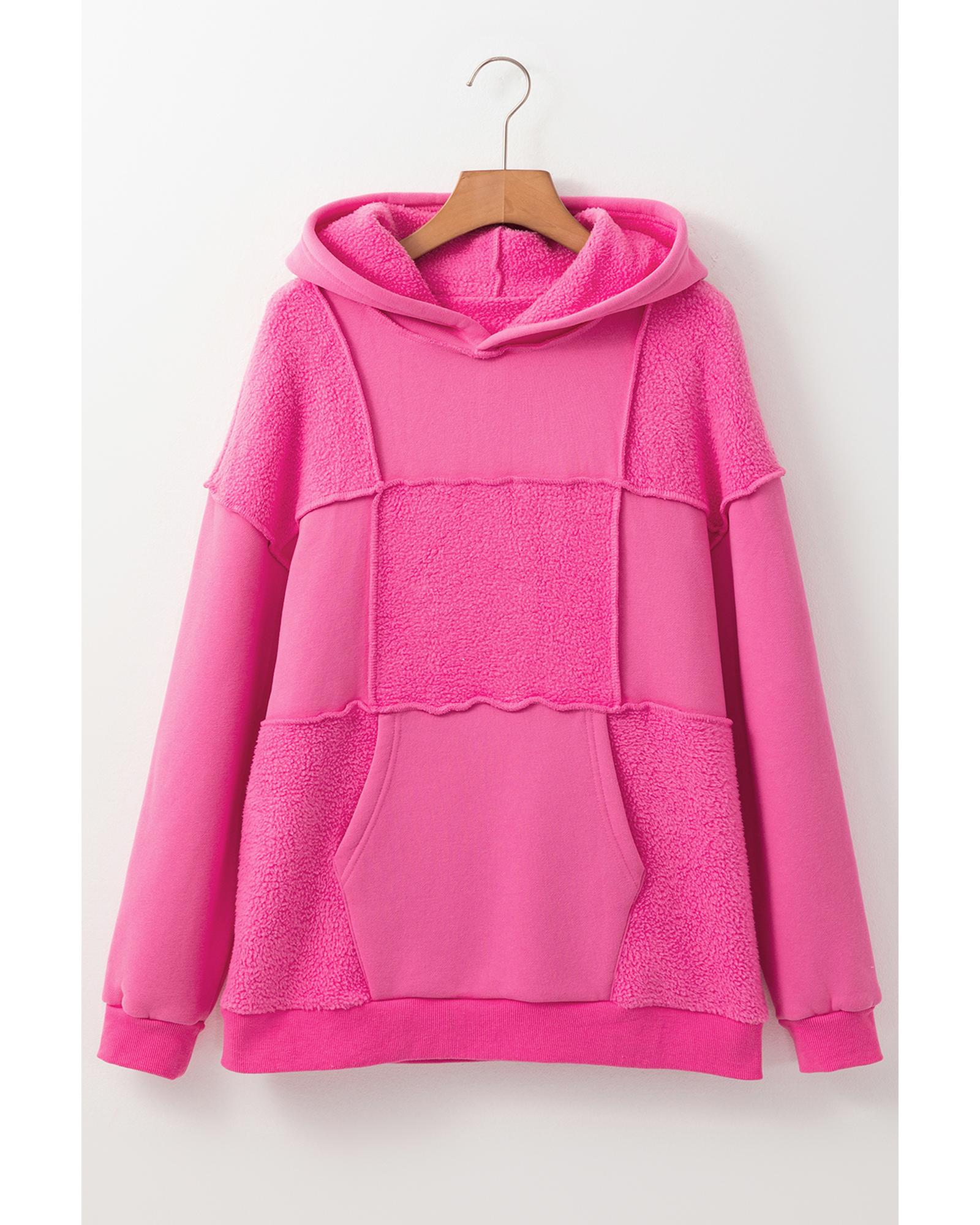 Pitaya Pink Mineral Wash Terry Patchwork Drawstring Hoodie – L