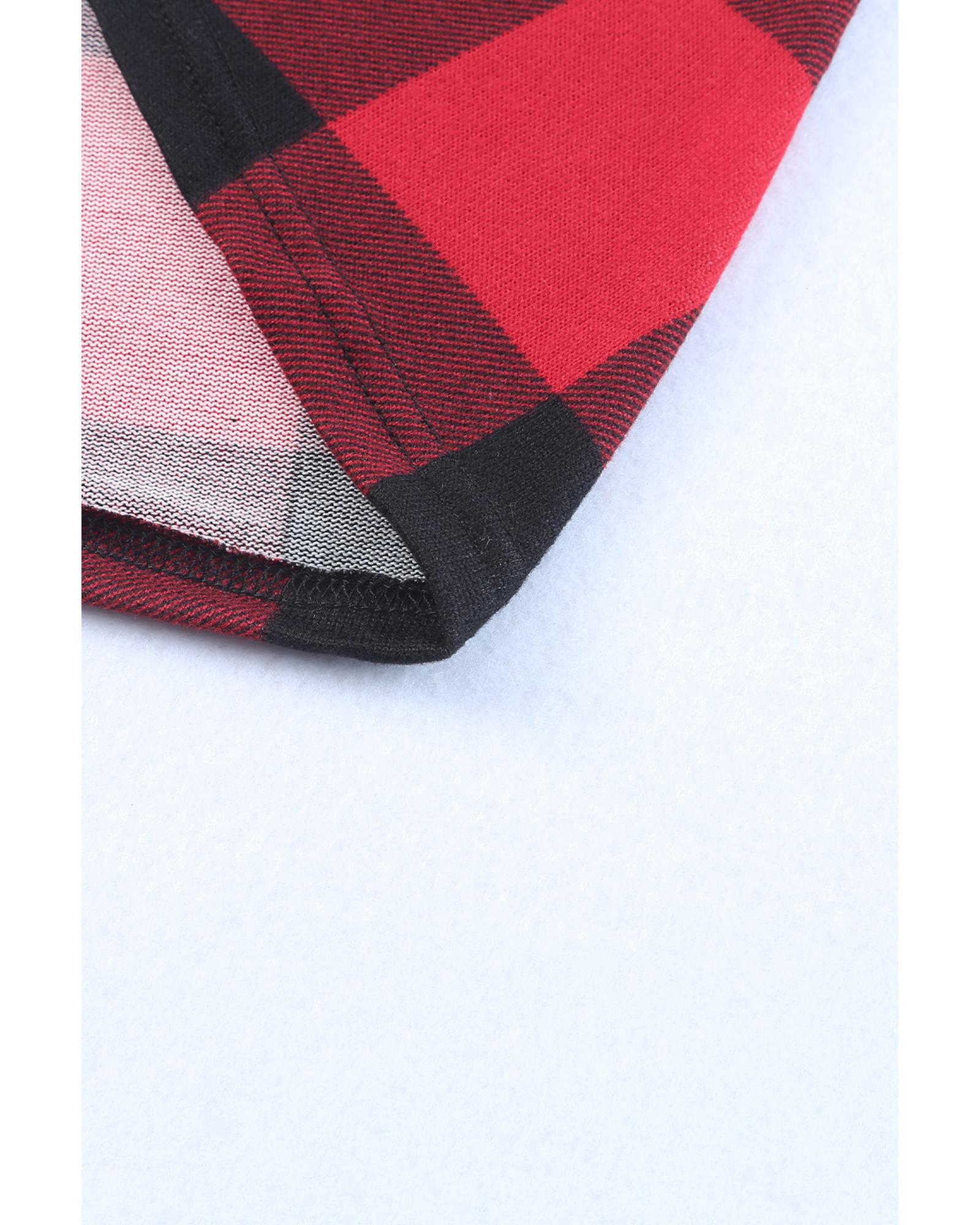 Red buffalo plaid with English style is lively and eye - catching Black pinstripes are timeless fashion elements Stitching and color block styles add uniqueness and interestingness to the clothes Round neck pullover style in relaxed fit Easy to style with any pants or jeans for a complementing look
