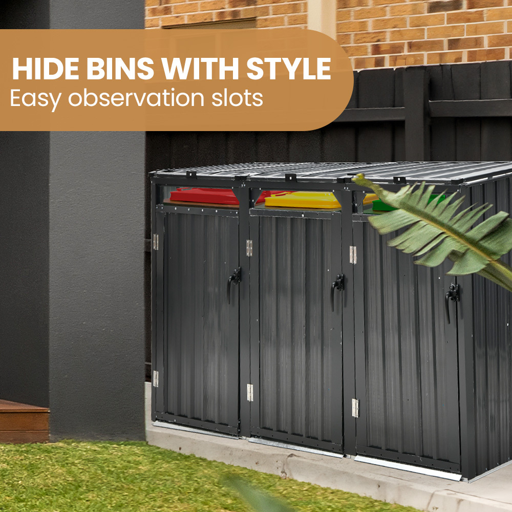 PLANTCRAFT Triple Steel Wheelie Garbage Bin Storage Shed, Enclosure with 3 Opening Doors