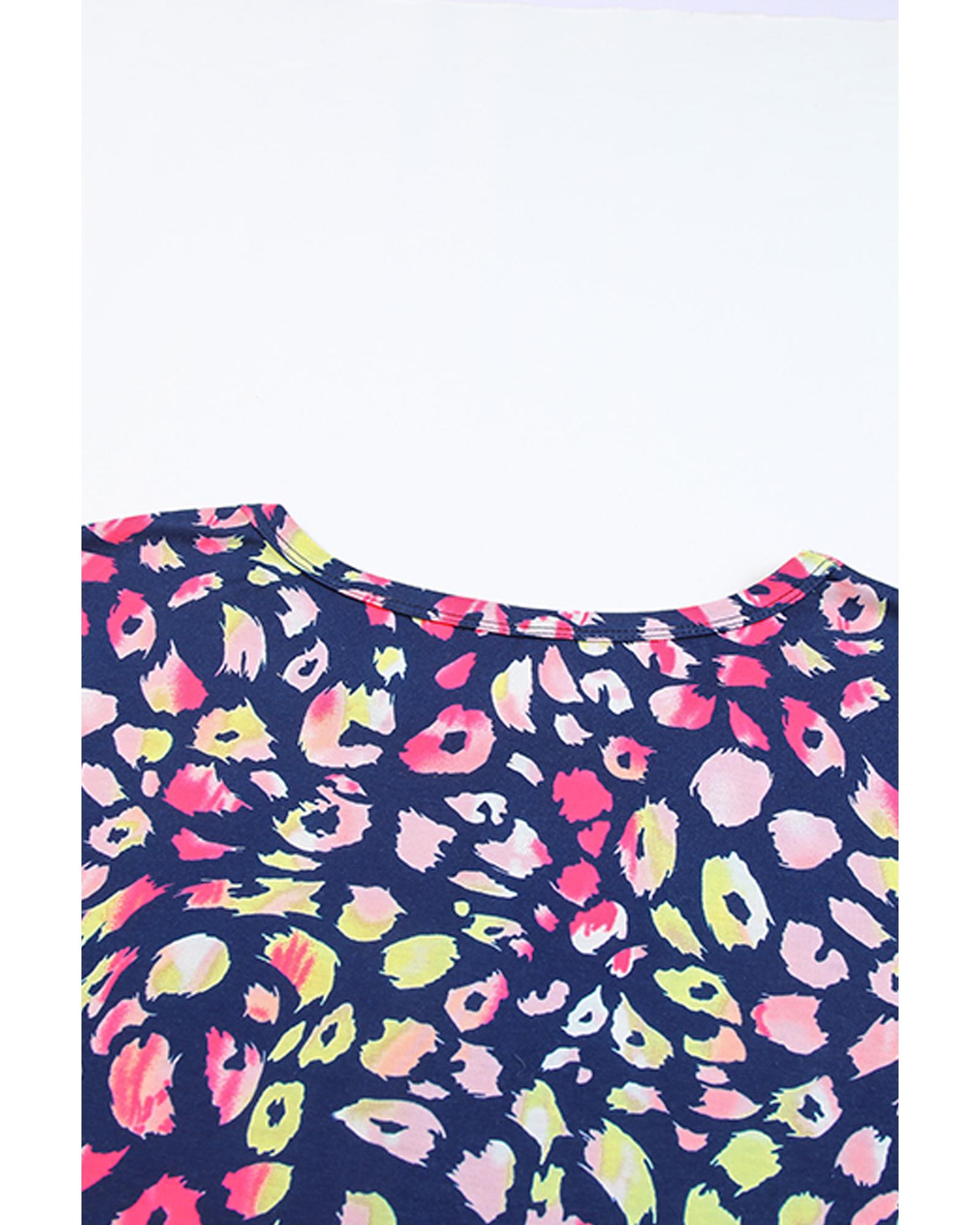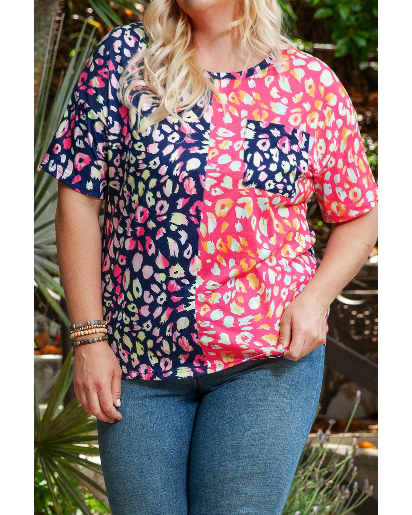 Plus Size Leopard Colorblock Short Sleeve Top – 2X