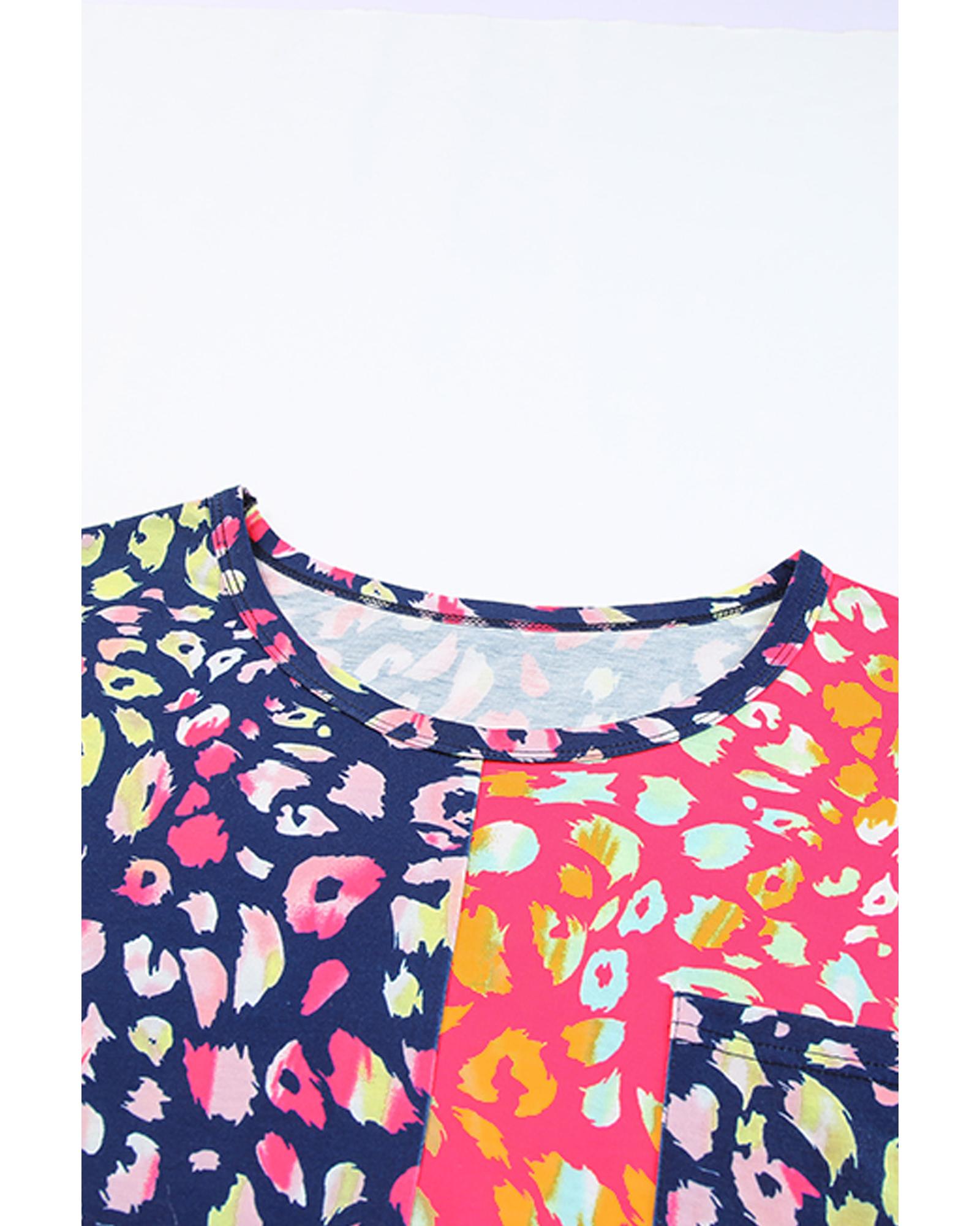 - Featured with a crew neckline short sleeves chest pocket and leopard patchwork