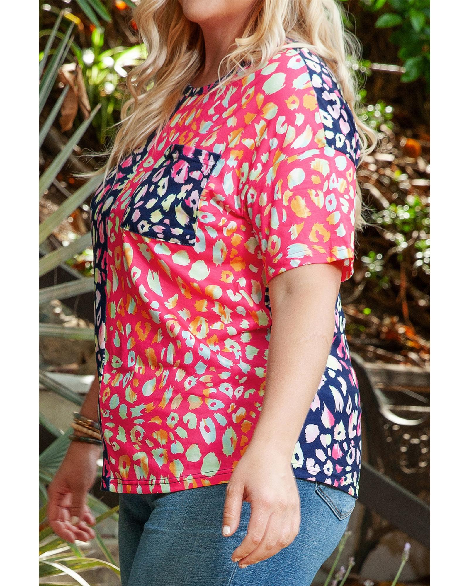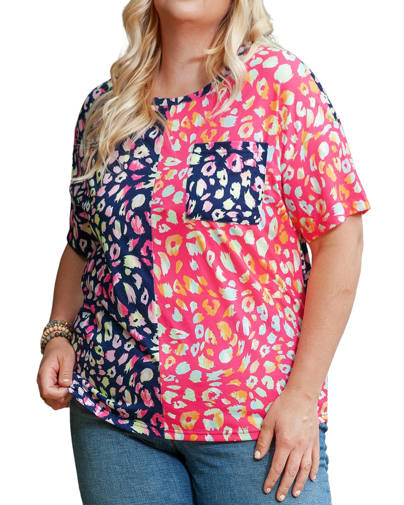 Plus Size Leopard Colorblock Short Sleeve Top – 3X
