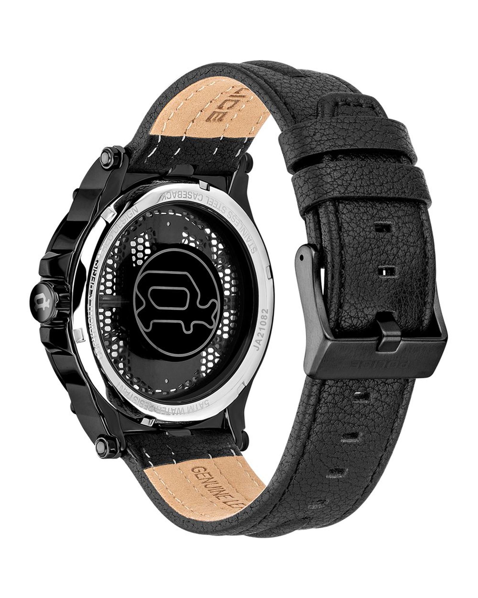 Police Men’s Black Leather Watch – One Size