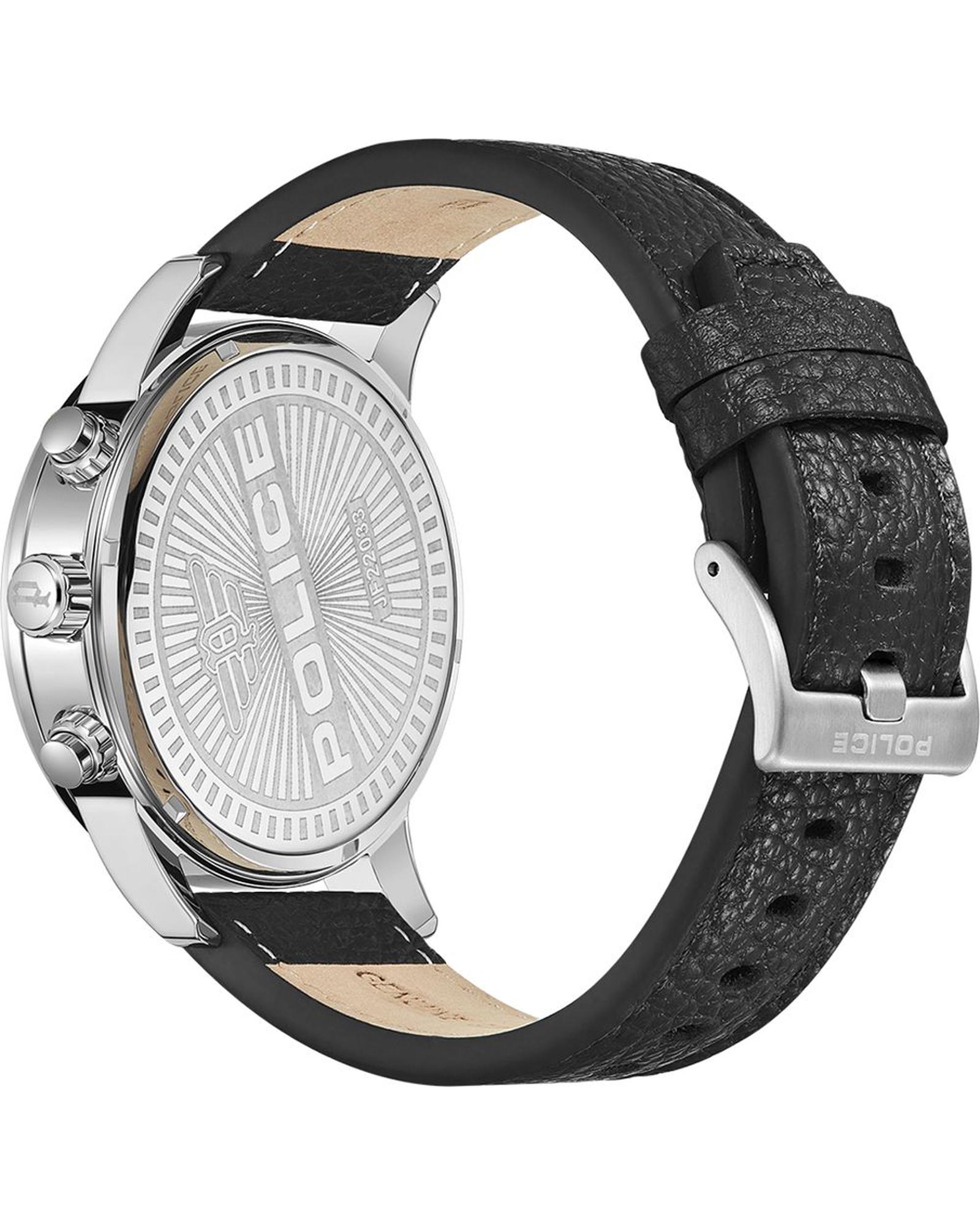 Police Men’s Black Leather Watch – One Size