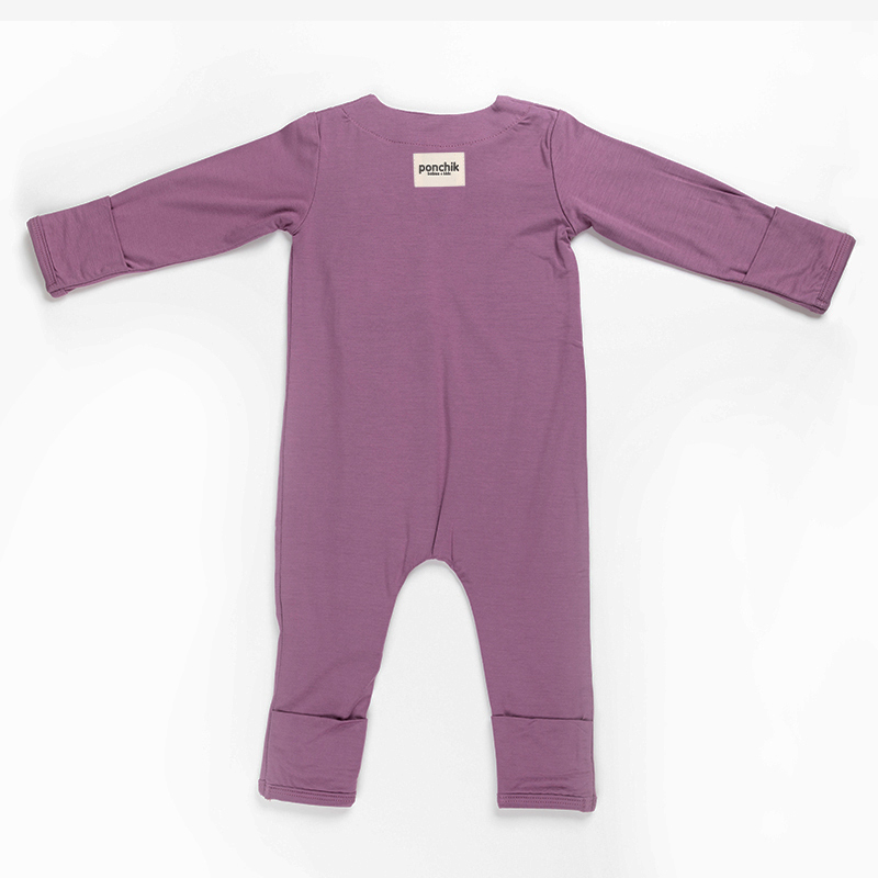 Ponchik Babies + Kids – Magnetic Bamboo Body Suit Onesie – Plum – 6-12m
