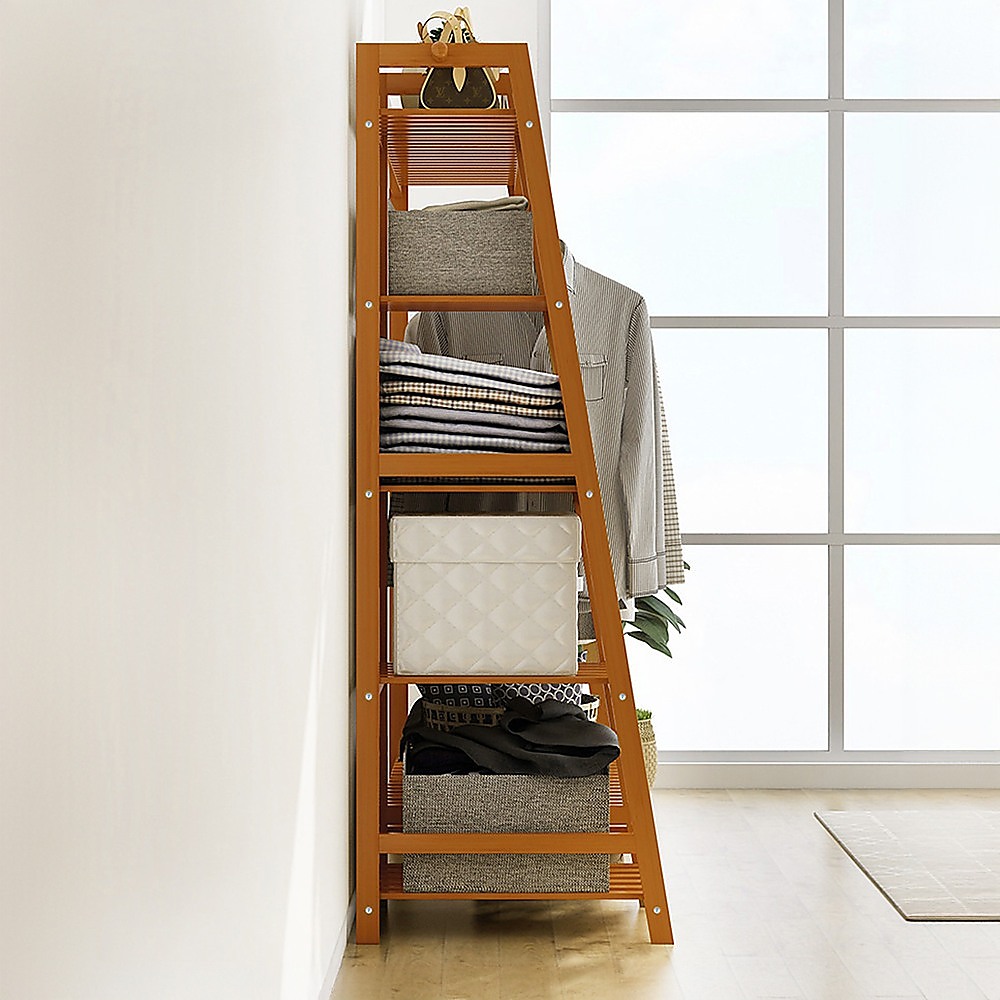 Portable Clothes Rack Coat Garment Stand Bamboo Rail Hanger Airer Closet