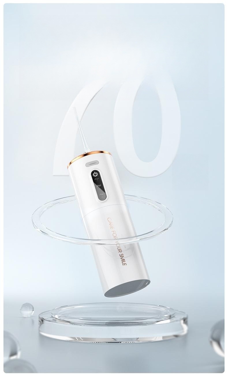 Elevate your oral hygiene routine with our Portable Electric Water Flosser, designed for effective gingival protection and a superior clean. This sleek and compact water flosser, inscribed with “CARE FOR YOUR SMILE,” offers multiple intensity modes to suit your comfort and cleaning needs. It’s perfect for removing food debris and plaque from hard-to-reach areas between teeth and along the gumline. The device features a convenient USB-C charging port for modern, easy charging and comes with interchangeable nozzles. Its user-friendly design includes a simple power button and mode selection indicators. Ideal for home use or travel, this electric water flosser helps promote healthier gums and a brighter smile.