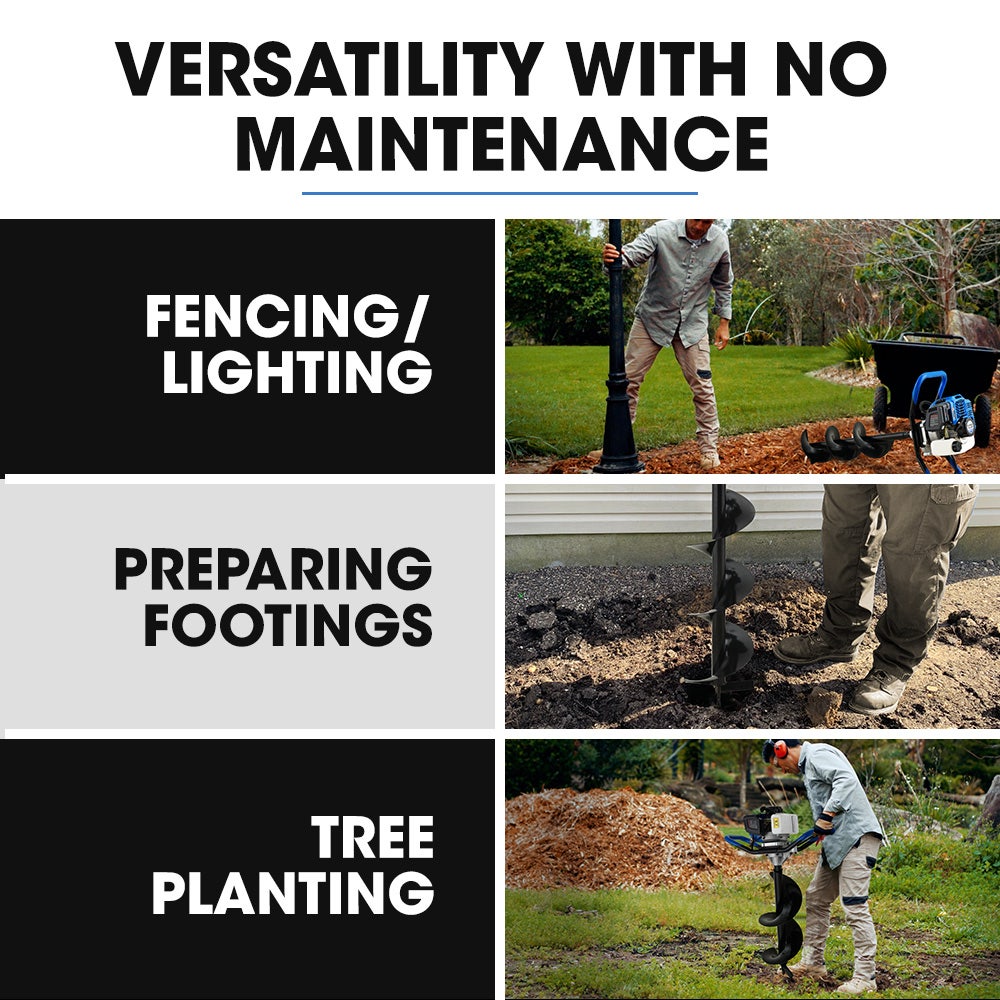 POWERBLADE PD950 52cc 2-Stroke Petrol Post Hole Digger, w/ 3 Auger bits, 600mm Extension Shaft