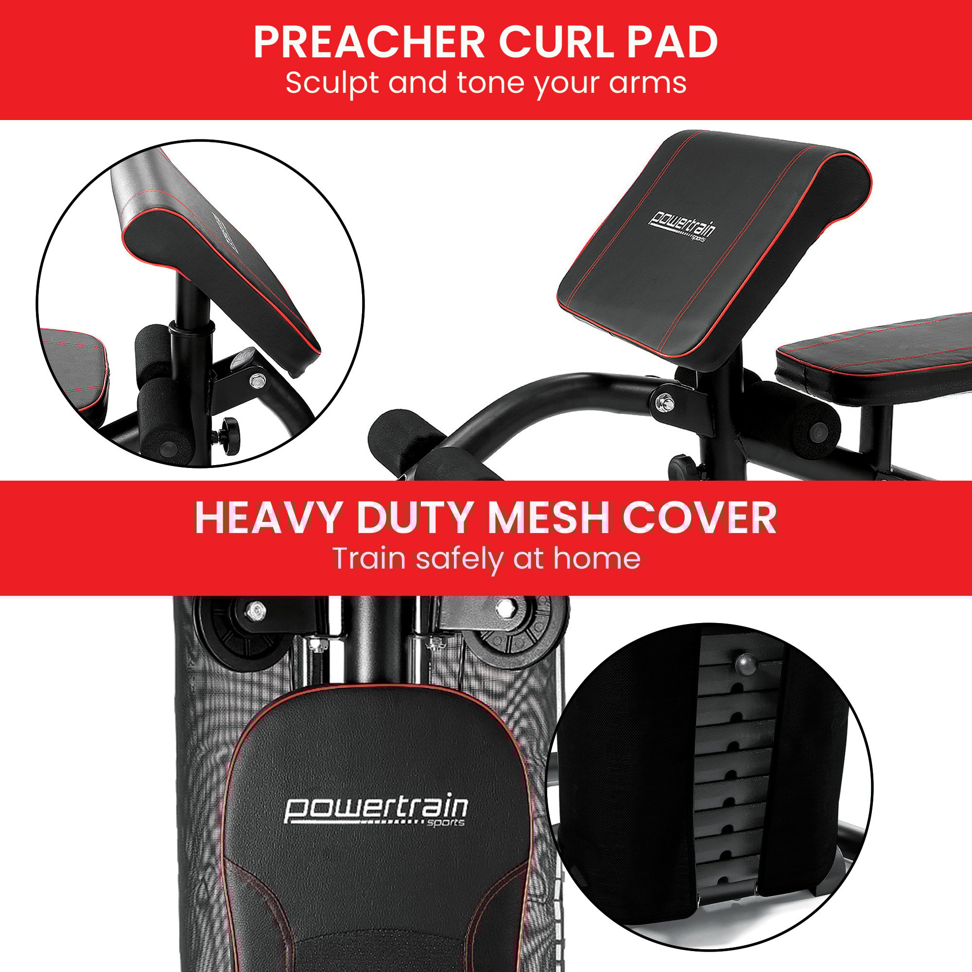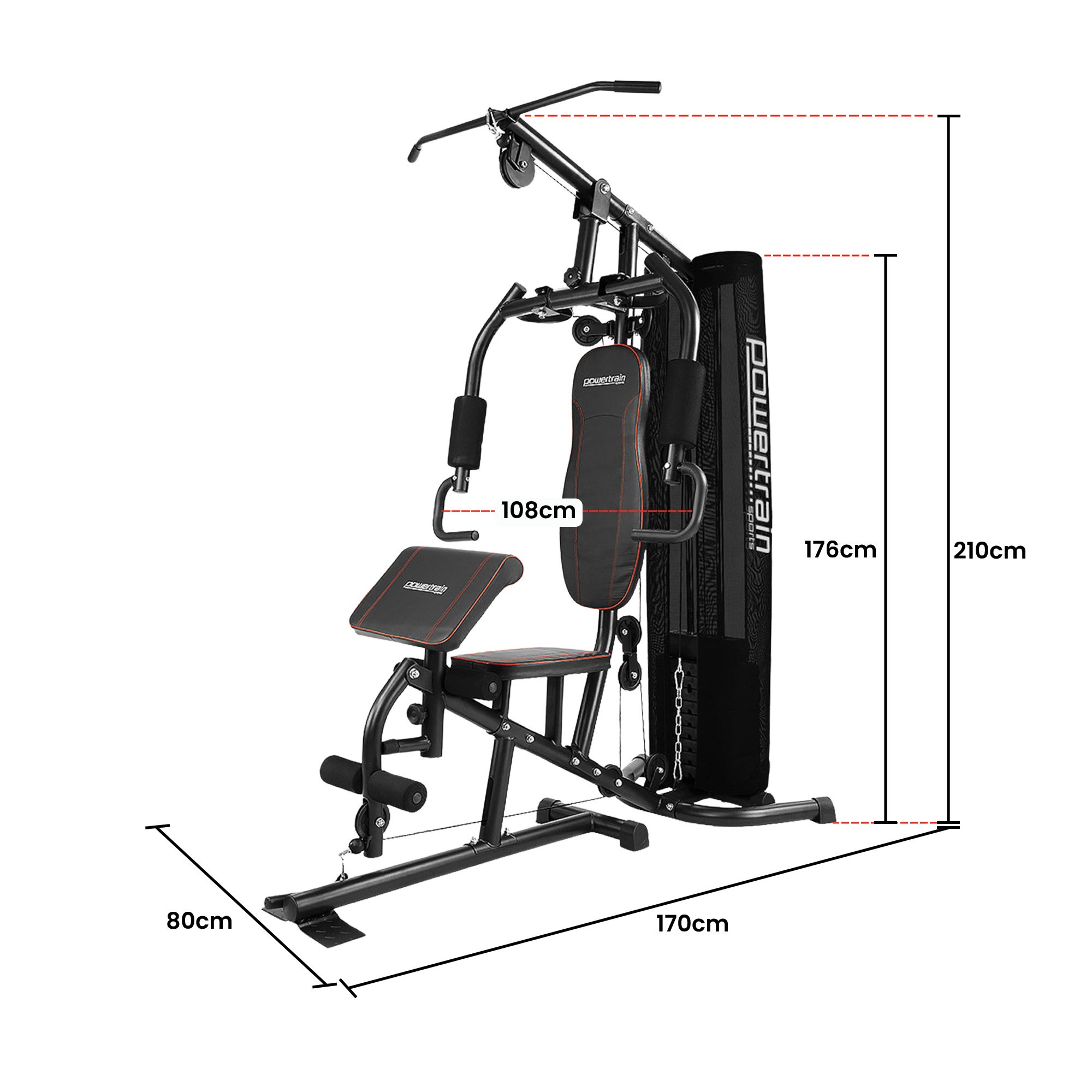 Powertrain Multi Station Home Gym With 68kg Weights Preacher Curl Pad
