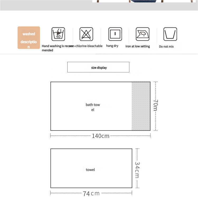 - Bath Towel Dimensions: 70cm x 140cm