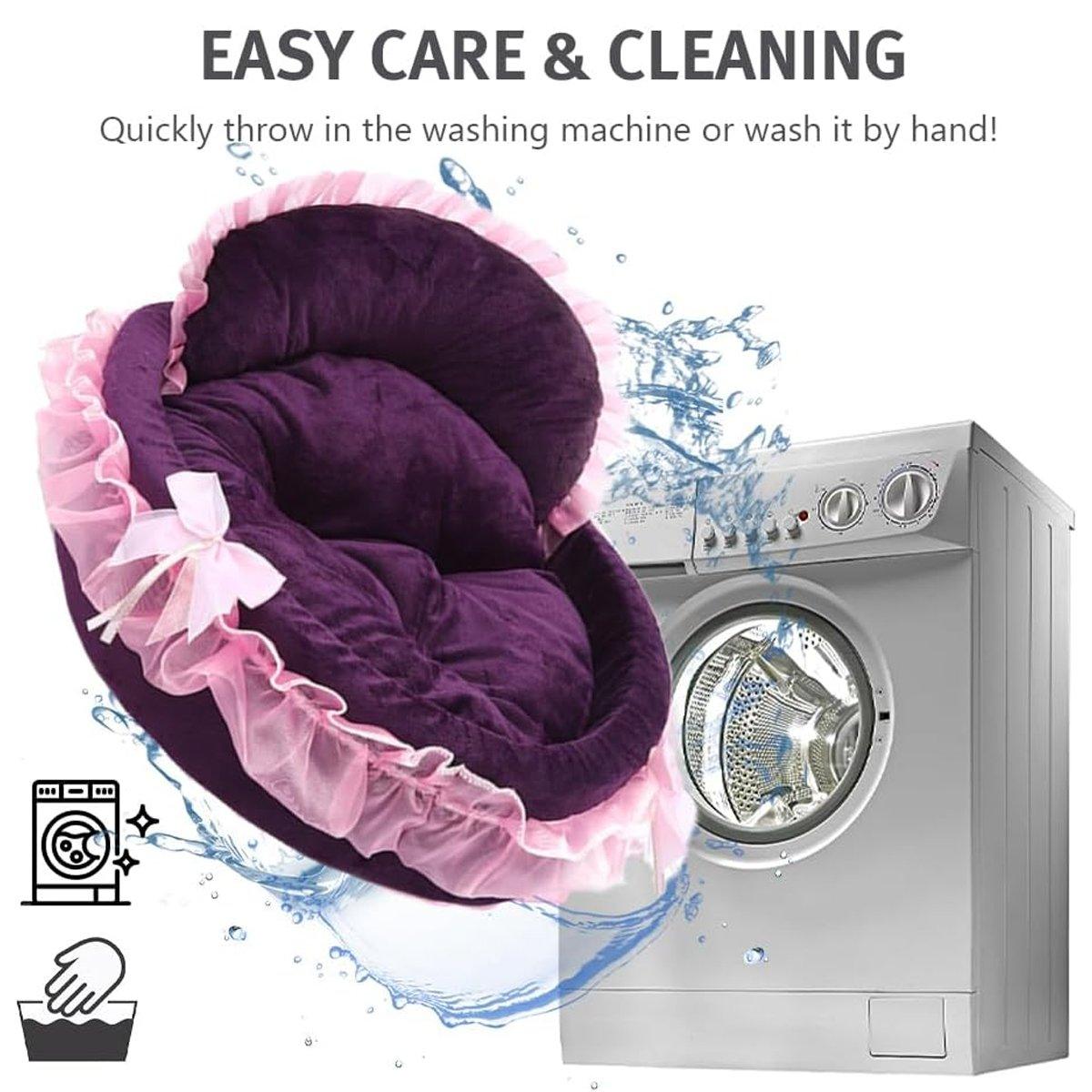 Give your pet the luxury they deserve with this soft and stylish princess pet bed. Featuring elegant lace details and a charming bowknot, this bed not only enhances your pet’s comfort but also adds a royal touch to your home décor. The plush, removable cushion ensures maximum relaxation for your furry companion, while the anti-slip base keeps the bed firmly in place. Designed for cats and small dogs, this bed is perfect for year-round use and is easy to clean for long-lasting quality.