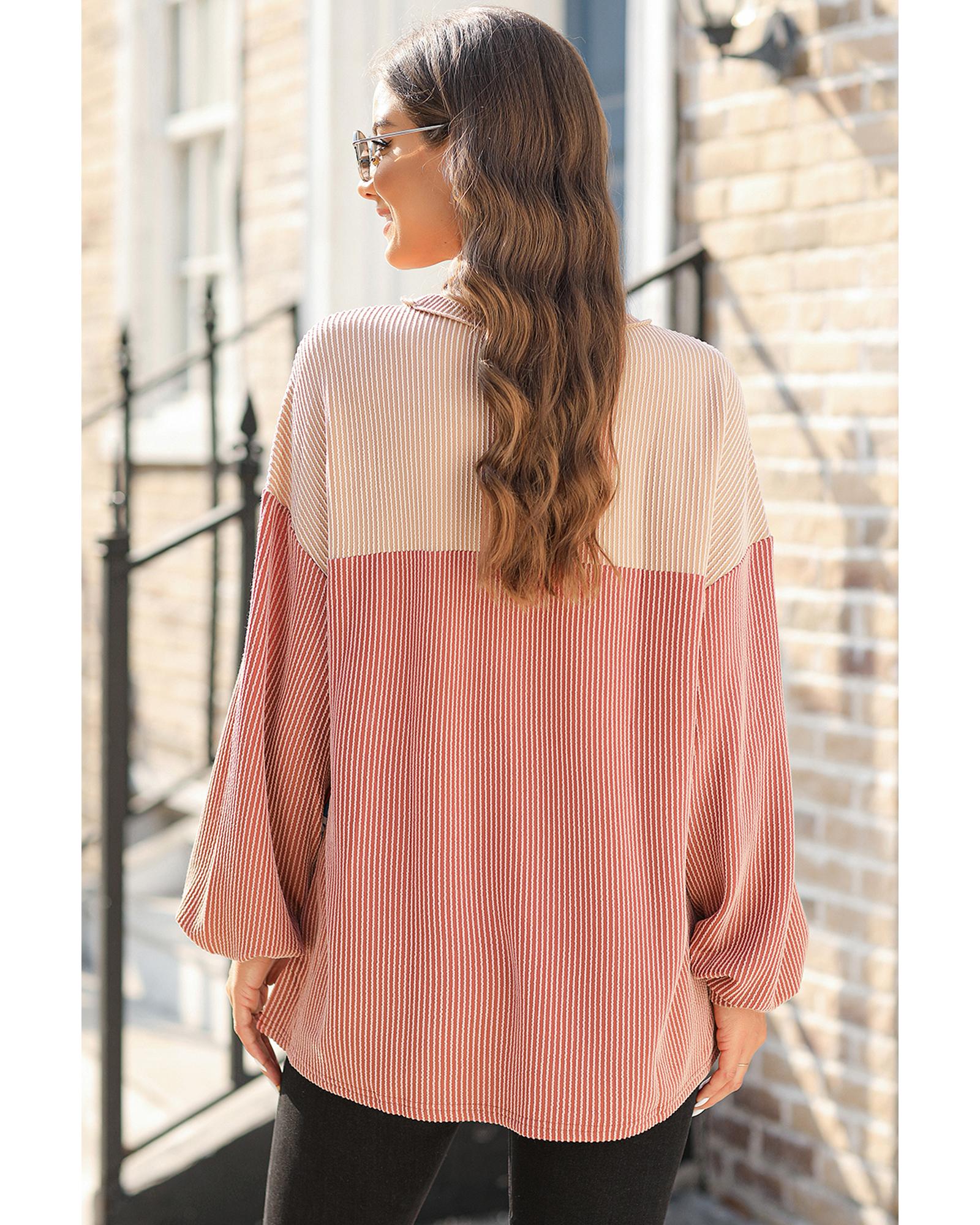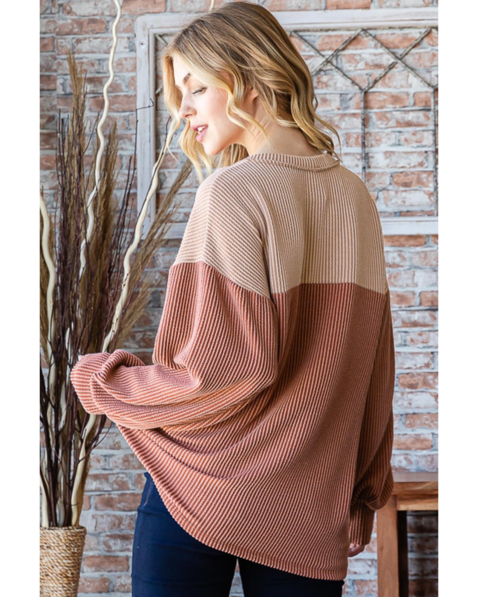 Printed Floral Contrast Colorblock Ribbed Top – XL