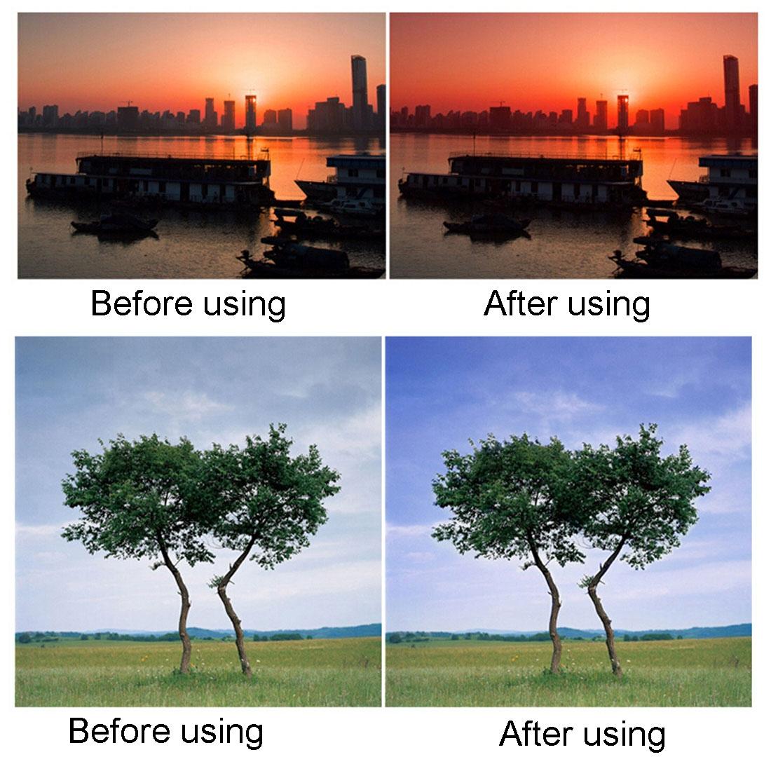 • The filter could limit the reflection from non-metal surface such as water and glass windows. Using the filters, the colours shall become brighter and clearer and the contrast shall be strengthened.