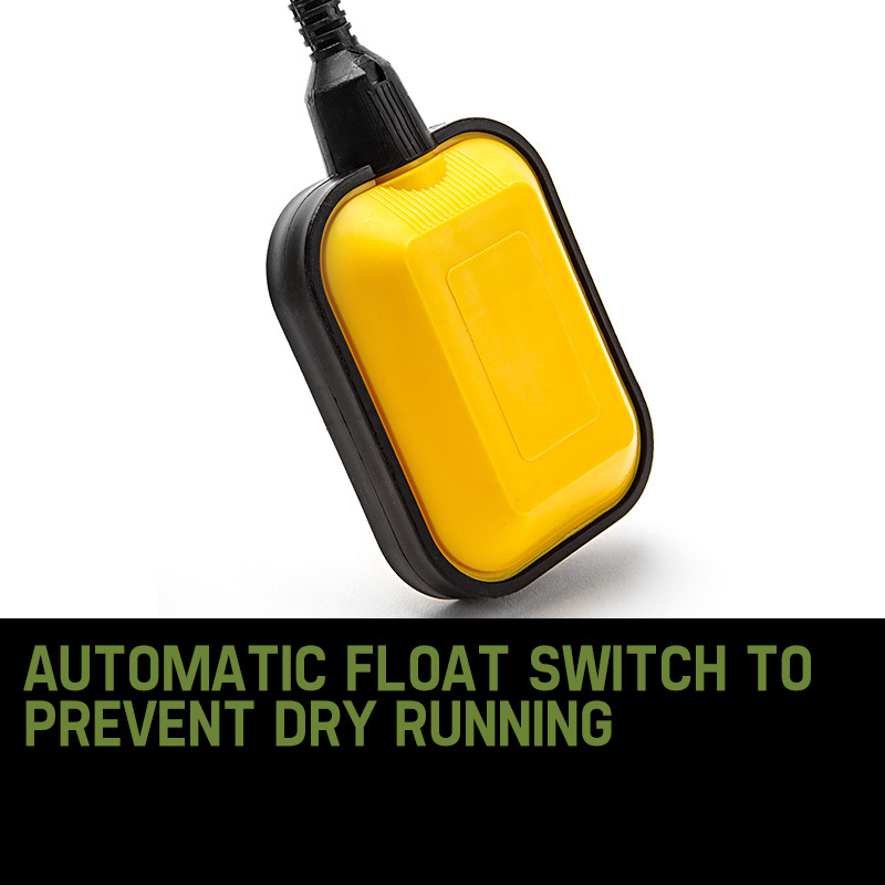 The float switch protects your pump from dry running and overheat as this will cut-off the pump when the water reaches the minimum level at which the pump can operate. Clean water pumps can operate at a lower level than dirty water pumps as they do not have to account for particles being able to pass through the bottom of the pump. Pumps without a float or auto cut out type switch cannot run automatically and have to manually be controlled.