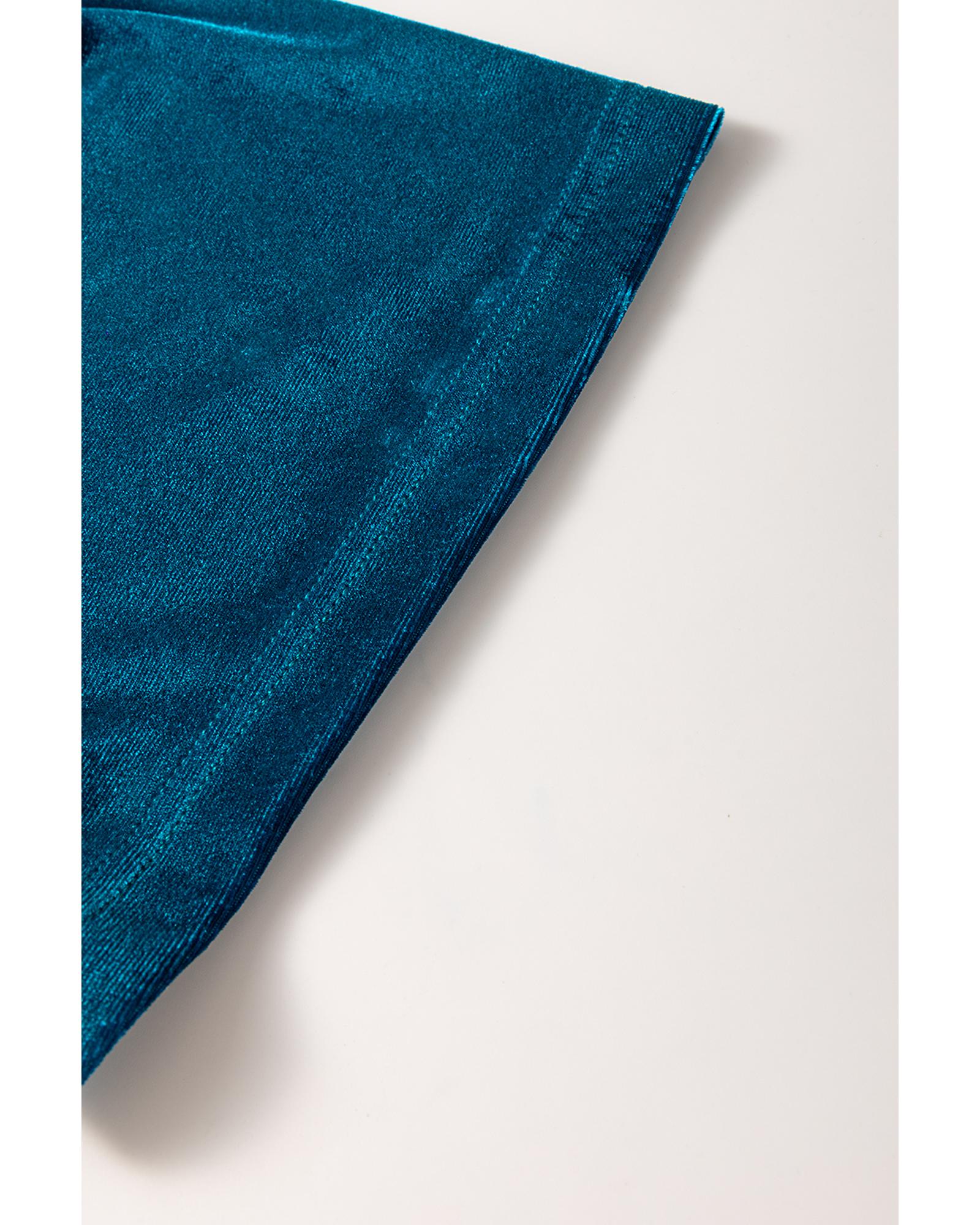 - Prussian Blue Velvet Short Sleeve Shirred Waist Tiered Maxi Dress