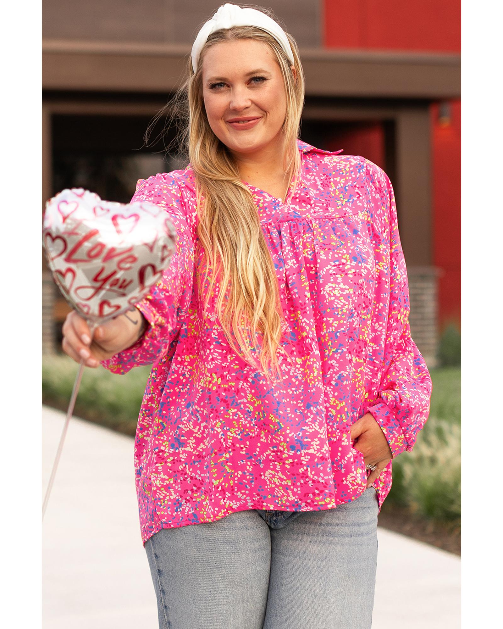 • Purple plus size floral print blouse