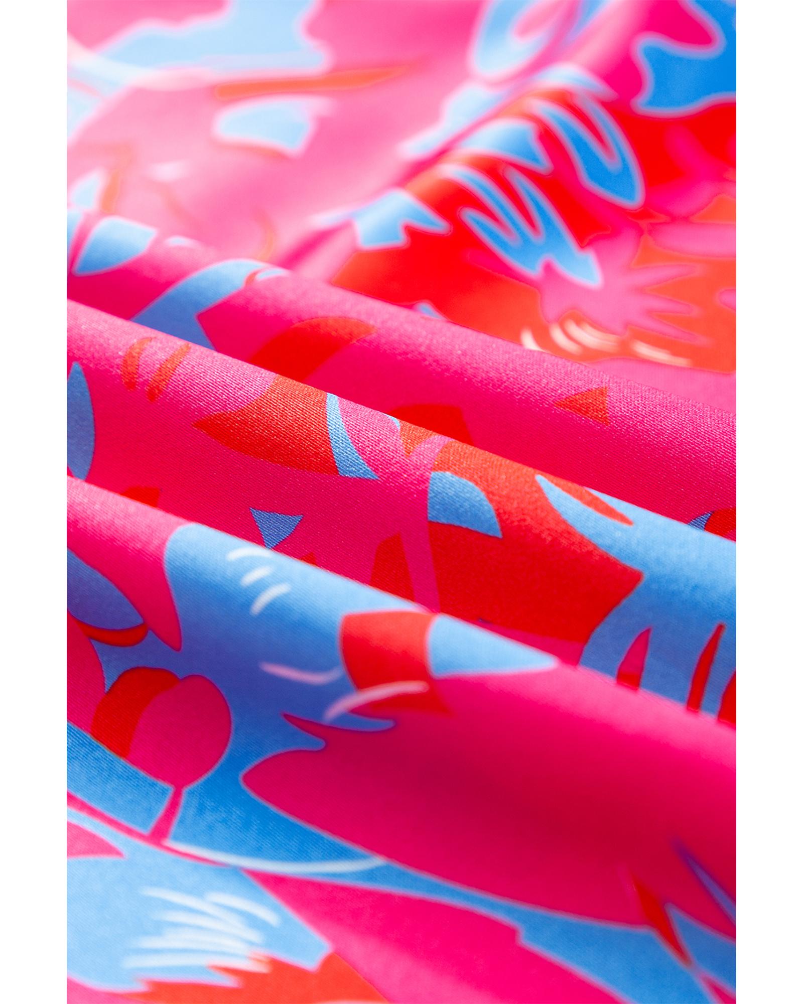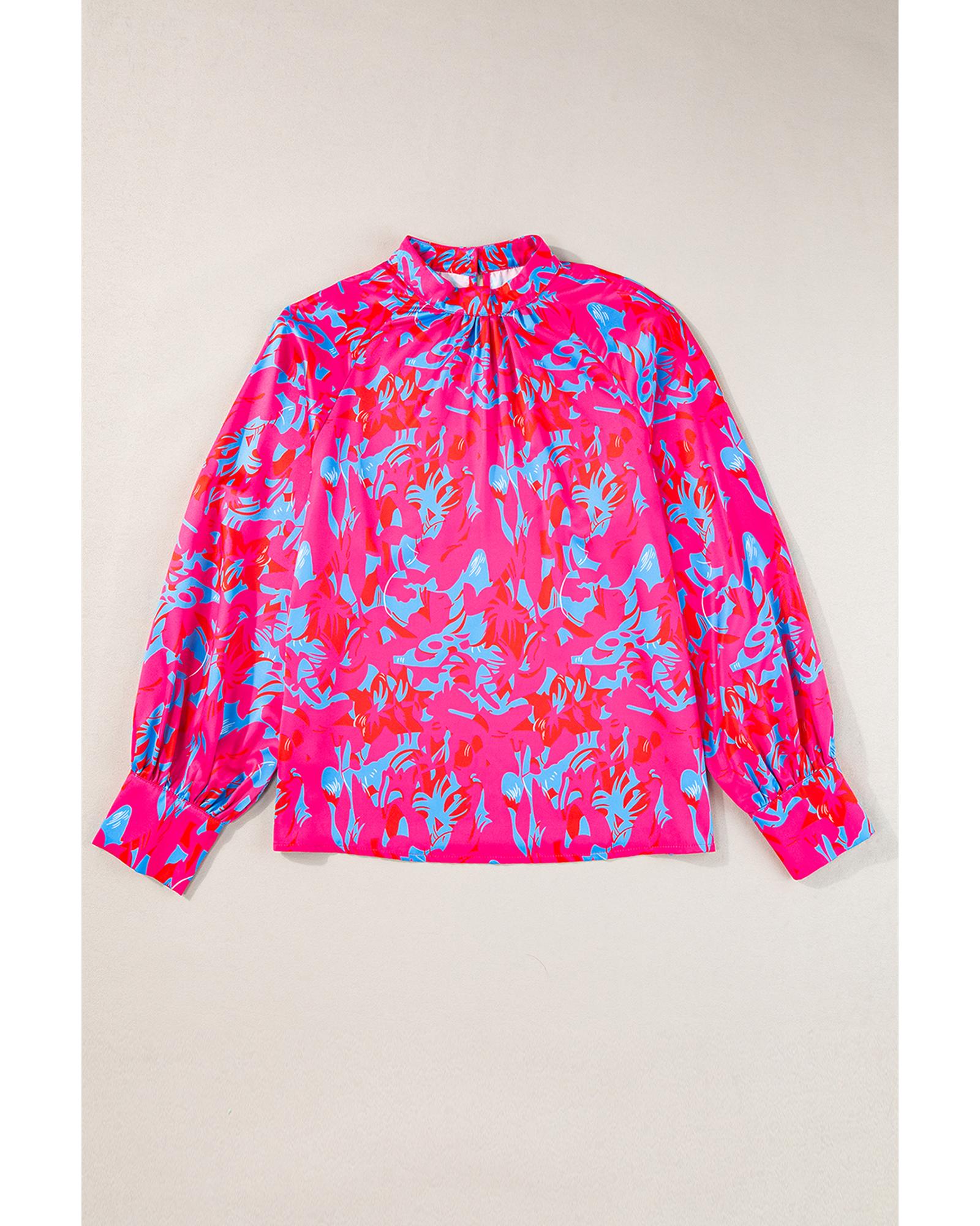 Purple Printed Bubble Sleeve Mock Neck Blouse – XL