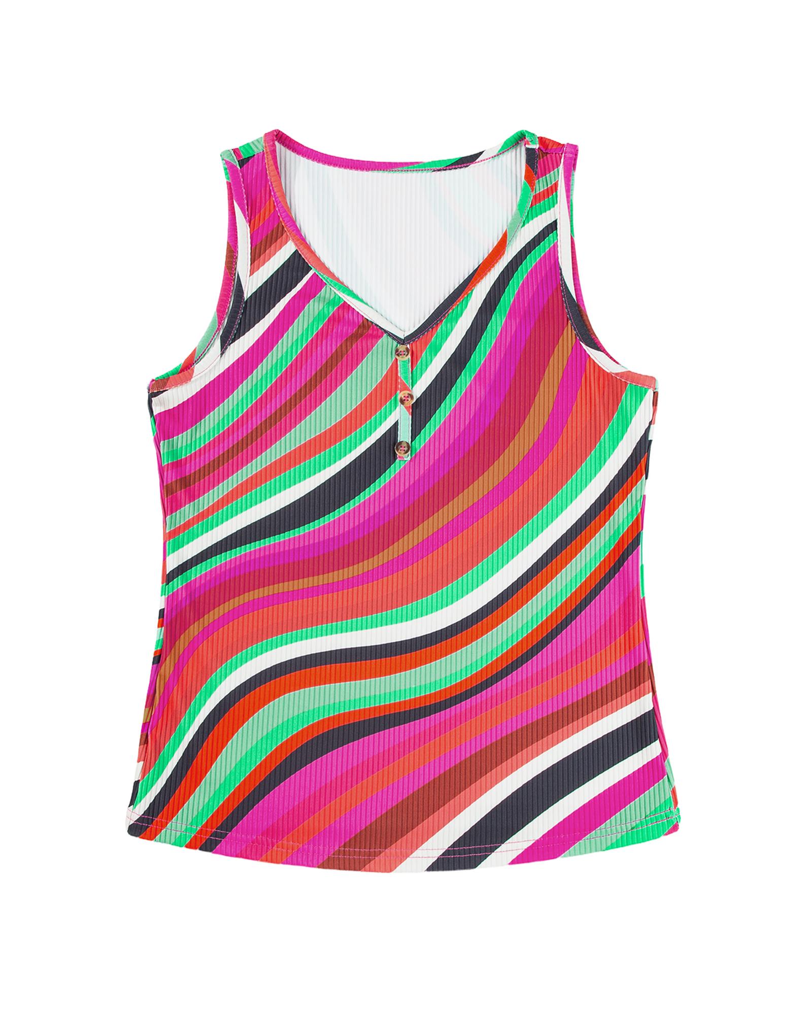 - Purple Wavy Striped Buttoned V Neck Tank Top